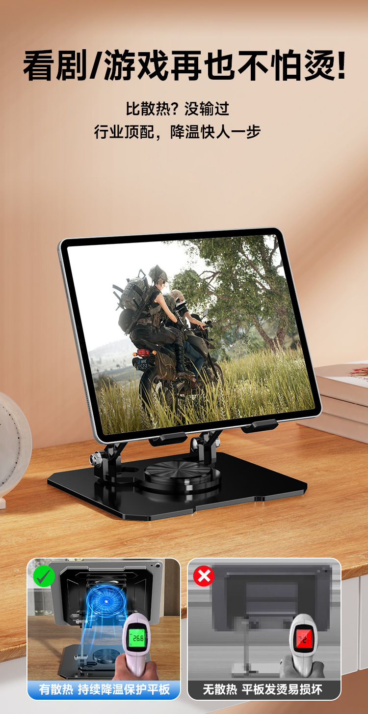 新型回転折り畳みタブレットスタンドデスクトップ怠け者金属サポートフレーム携帯型タービン放熱スタンド