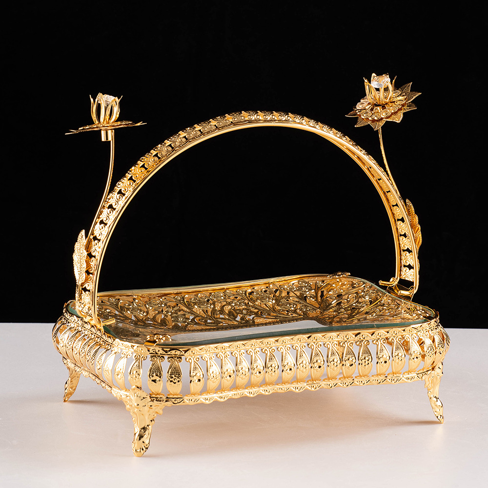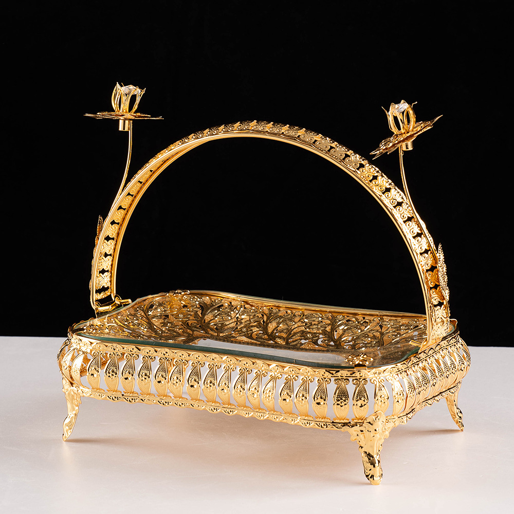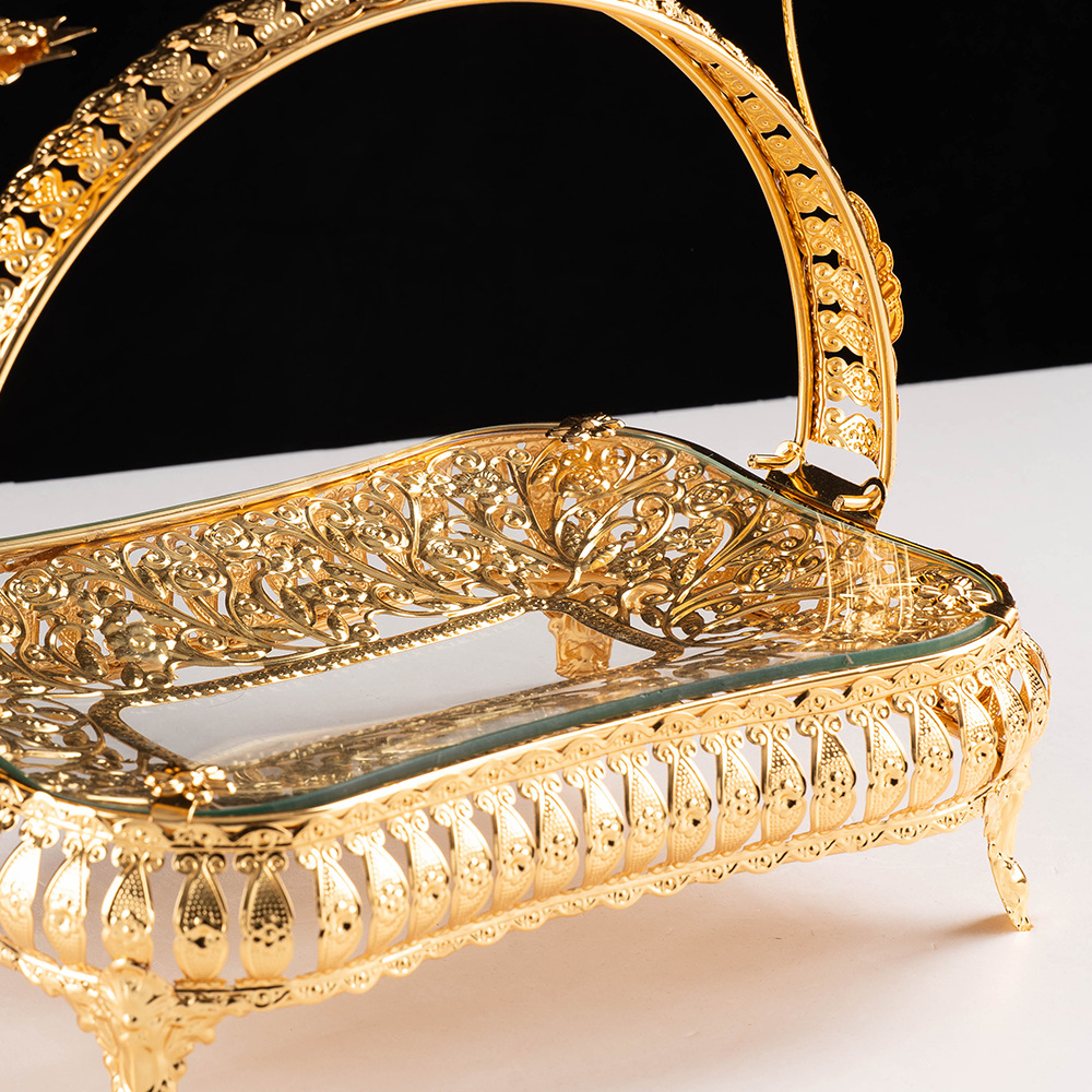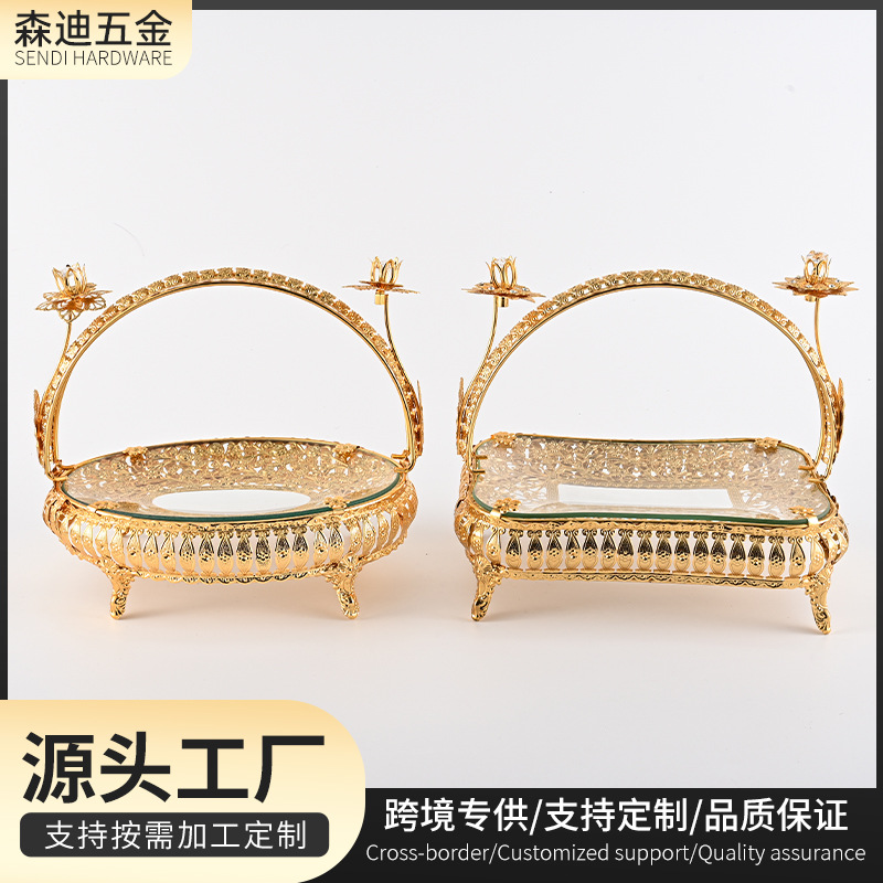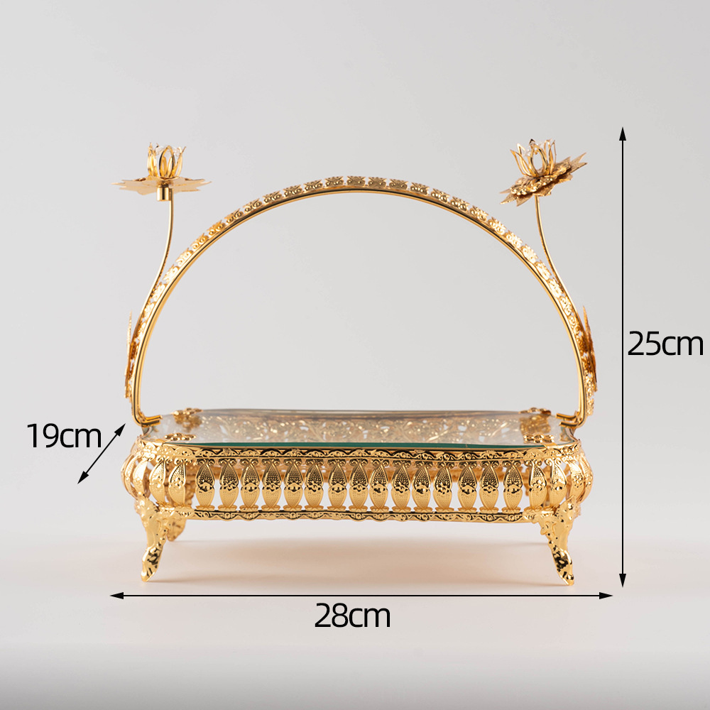 ロングトレイスクエアゴールデン中空ギフトフルーツスナック収納トレイホテルKTVレストランスナックキャンディフルーツトレイ