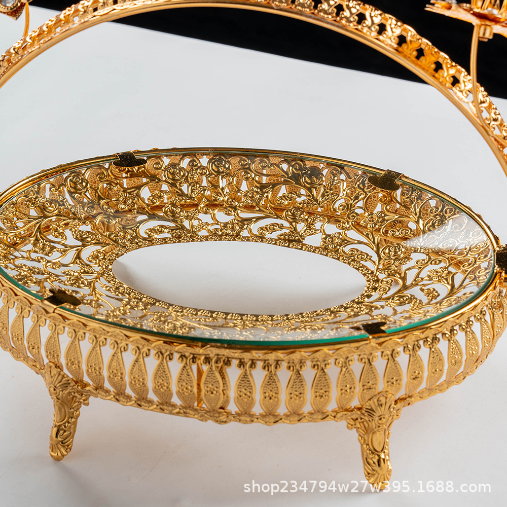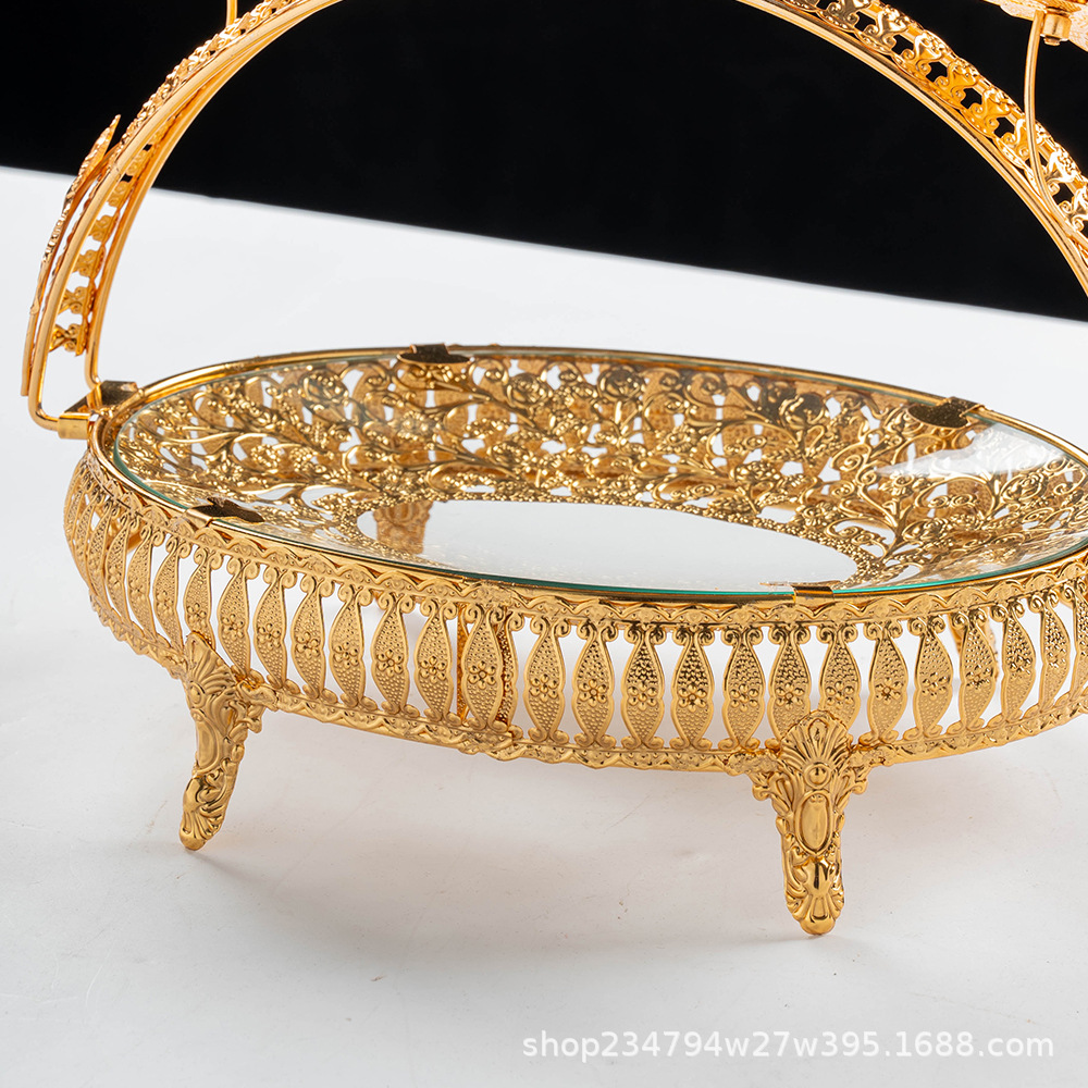 ロングトレイ楕円形ゴールデン中空ギフトフルーツスナック収納トレイホテル KTV レストランスナックキャンディーフルーツトレイ