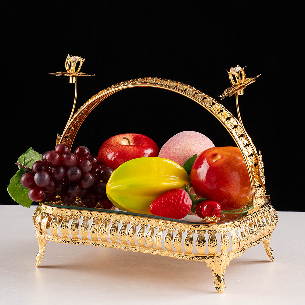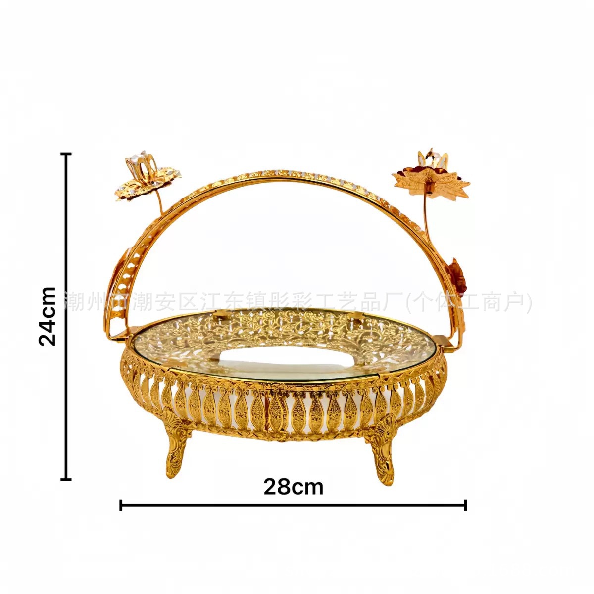 クロスボーダーの金属皿の茶皿の家庭用の軽い豪華なヨーロッパ式の果物皿の装飾のトレーの客間の工芸の贈り物のアイデアの置物