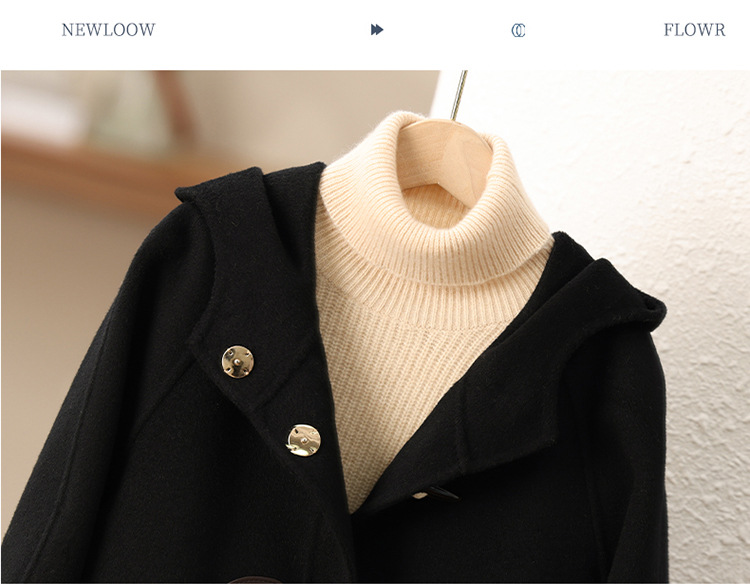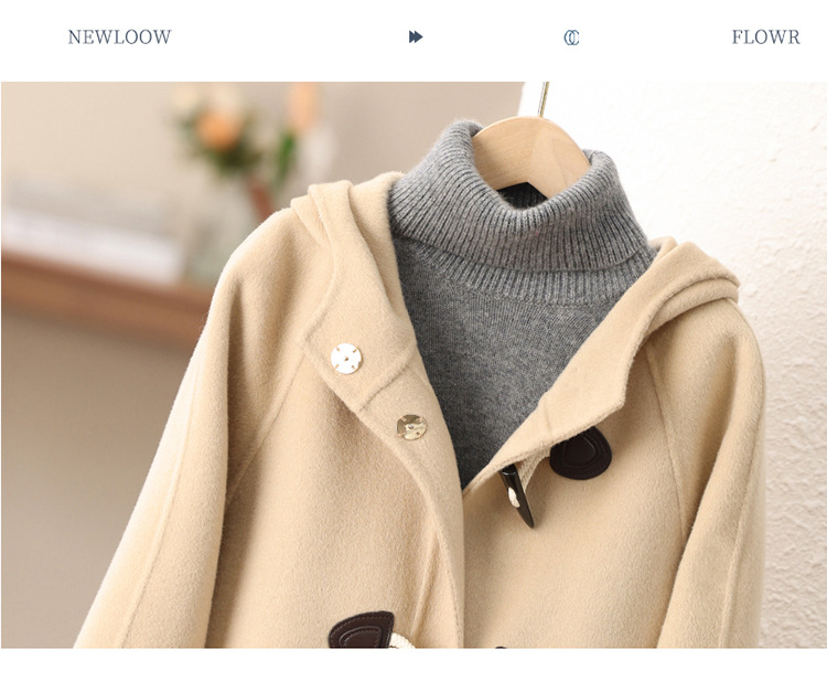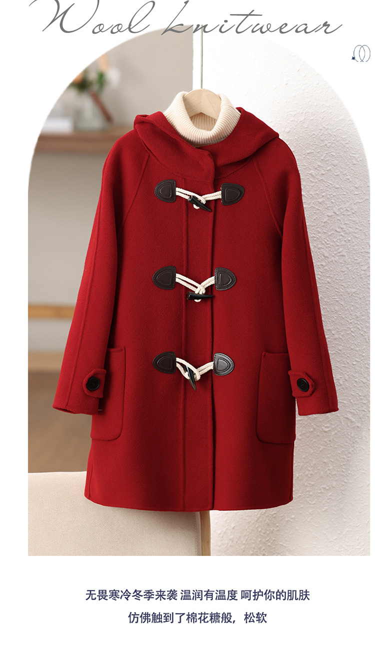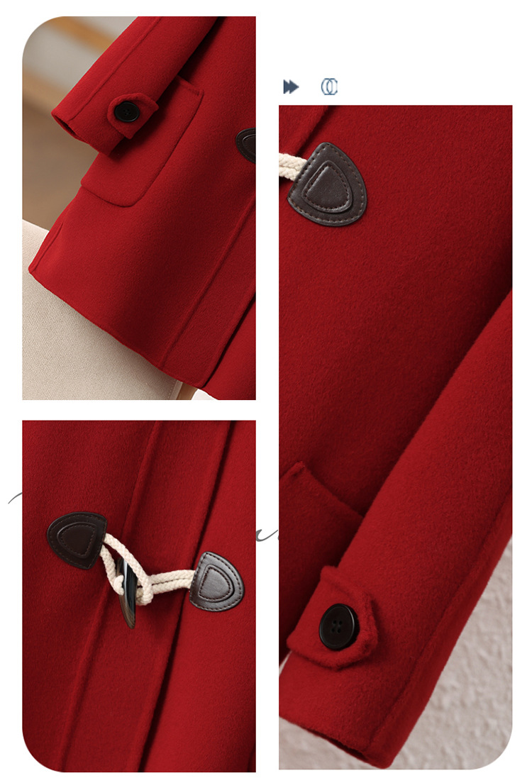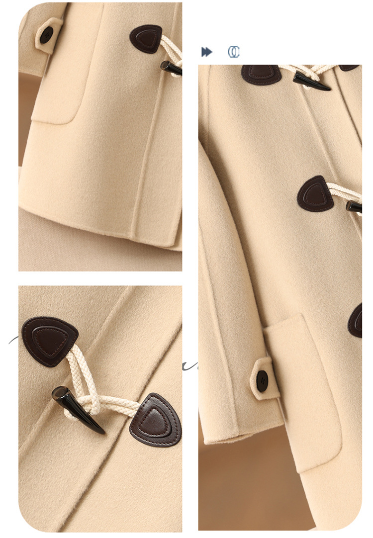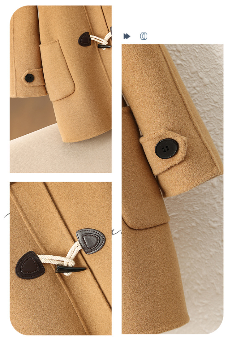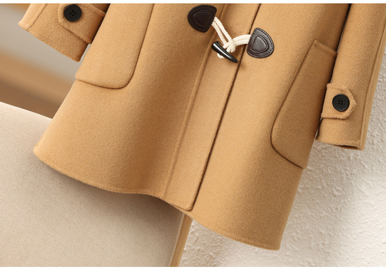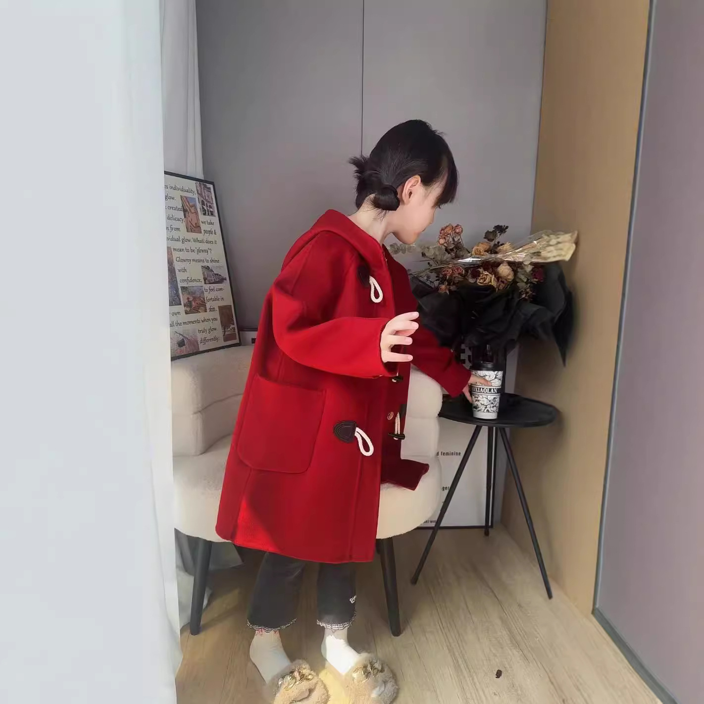 2025秋冬新款中大童儿童羊毛呢子女童牛角扣毛呢外套双面羊绒大衣