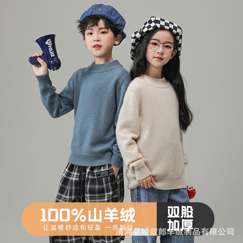 子供のカシミヤのシャツ秋冬の男の子のニットの底のシャツの女の子のカジュアルな丸首の純色の厚いセーターのウールのカーディガン
