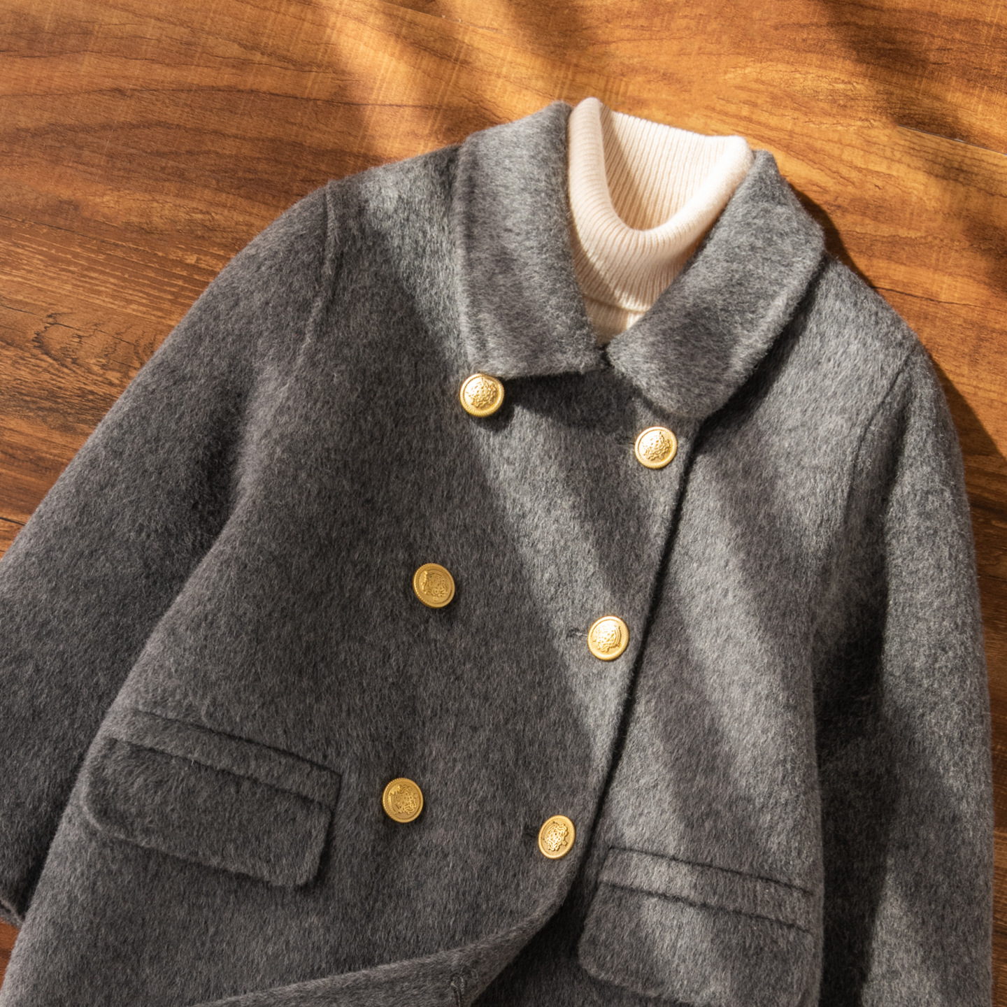 ハイエンドの純粋な手作りの子供の両面のカシミヤのコートの2023秋冬の赤ちゃんのウールのコート