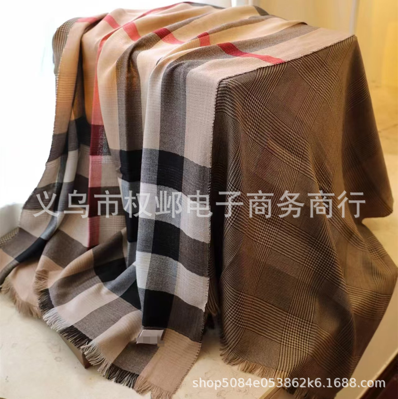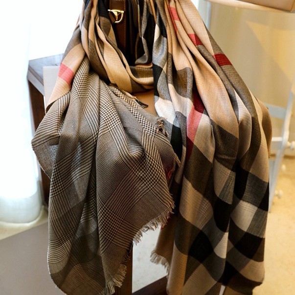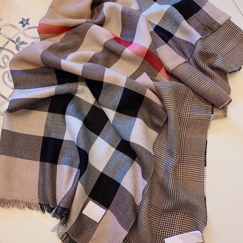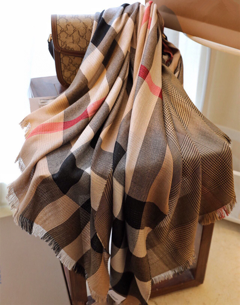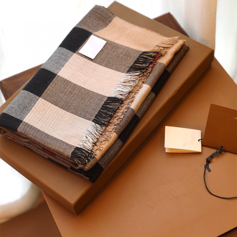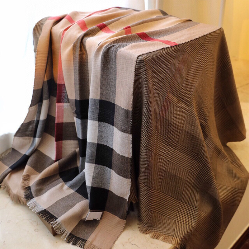 正确版本秋冬字母格子保暖羊绒流苏围巾办公室披肩盖毯大牌B家款