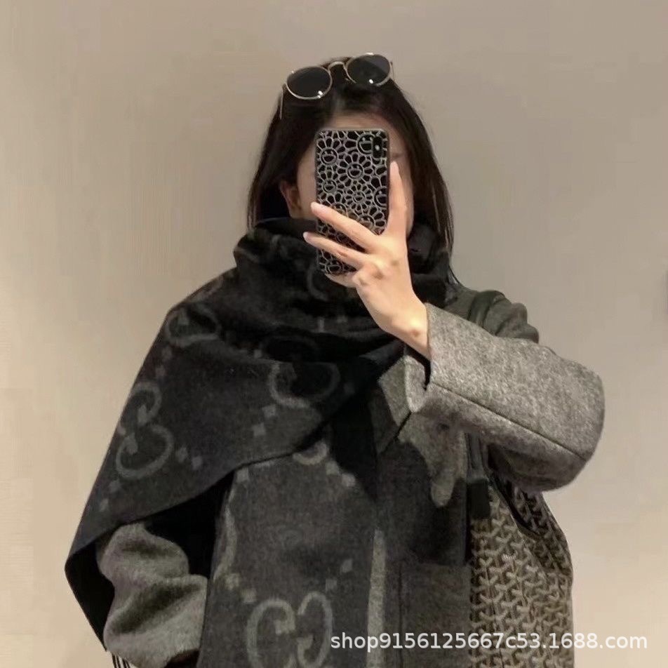欧米風秋冬GG文字模様カシミヤ風スカーフ レディース ロング丈 保温 両面使えるショール 欧米トレンド