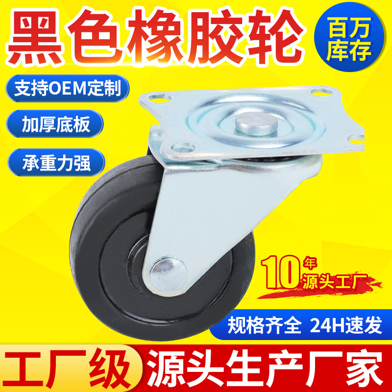 卸売大型黒色PVC単軸キャスター移動式ベッドサイドテーブル万能ホイールスーパーマーケット倉庫物流ハンドカートホイール