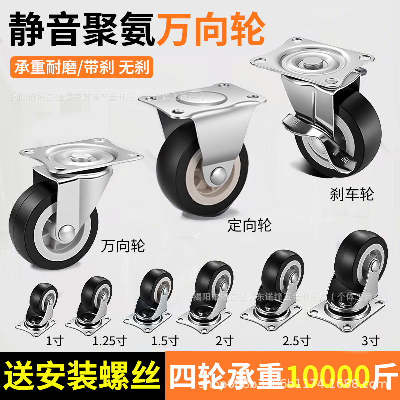 滚轮轻型万向轮脚轮1寸1.5寸2寸3寸滑轮轮子带刹车耐磨静音家具轮