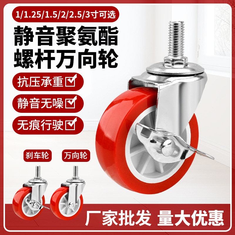 ユニバーサルホイール卸売り1-3インチ赤色スクリューm8m10m 12ポリウレタンPUキャスター工業スクリューブレーキ付き車輪