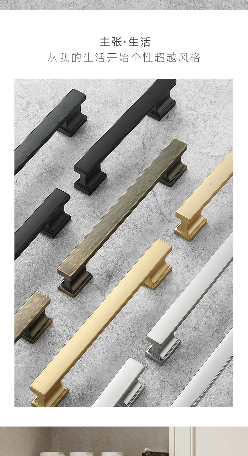 現代シンプルな北欧キャビネットドア金色銅色引き出しハンドル黒色延長アメリカ亜鉛合金キャビネットハンドル