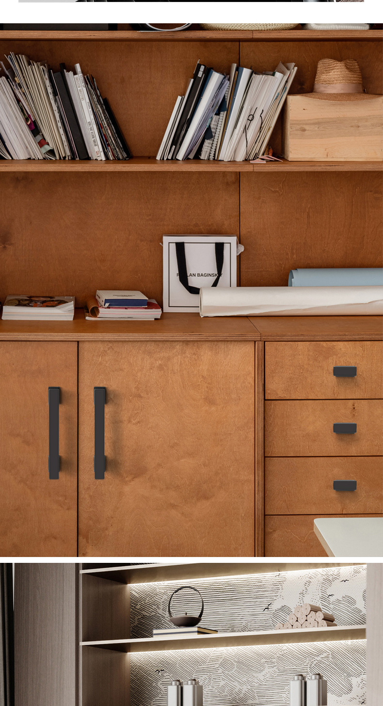 現代のシンプルな半円アルミニウム合金は、黒の取っ手北欧風キャビネットの引き出しを取り付けています。