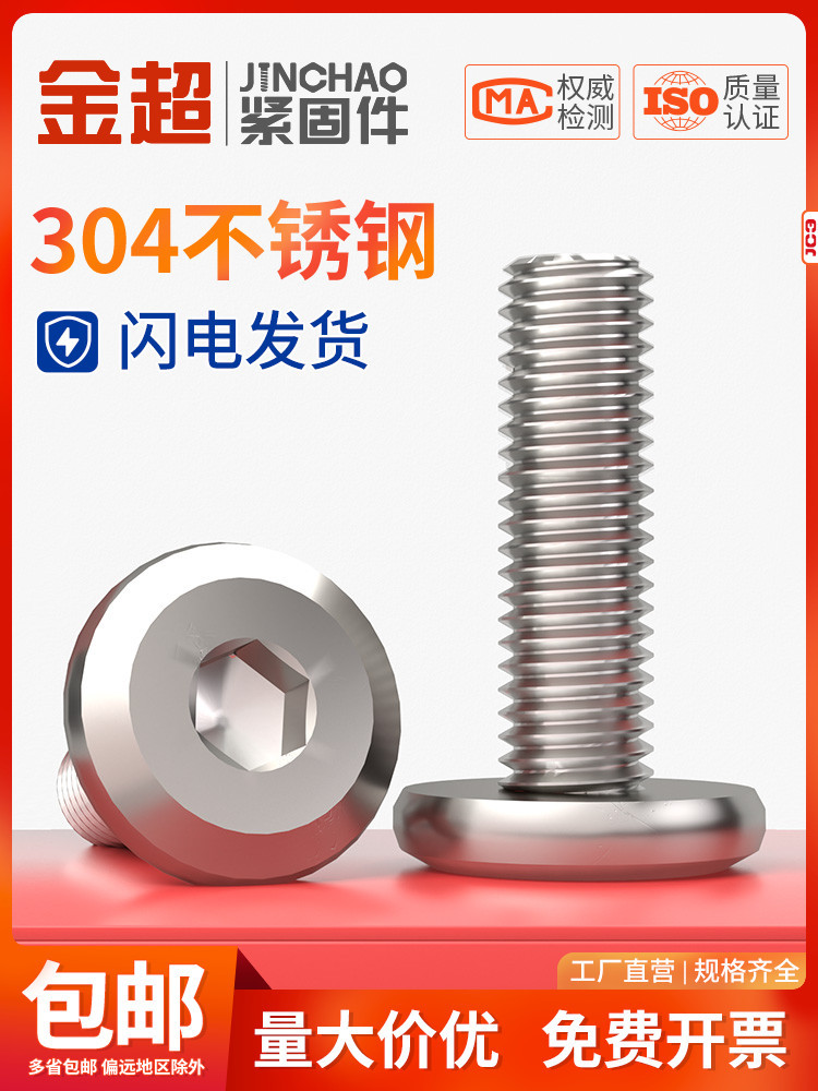 304ステンレス丸頭六角穴付きねじ斜め大平頭六角穴付き家具ボルトM2-M12