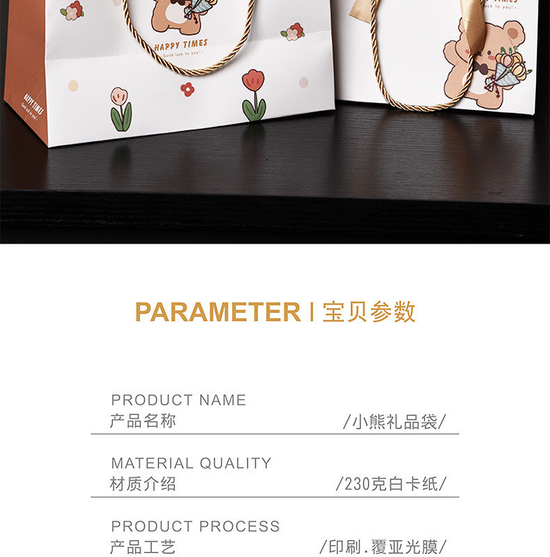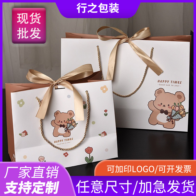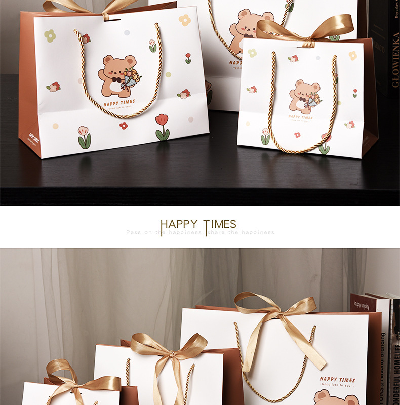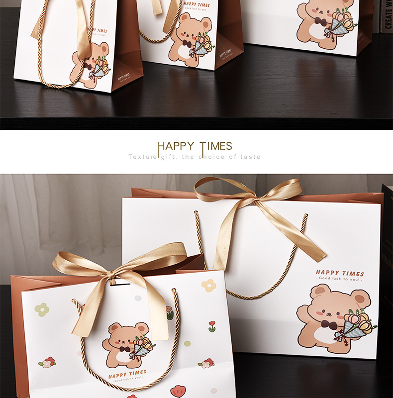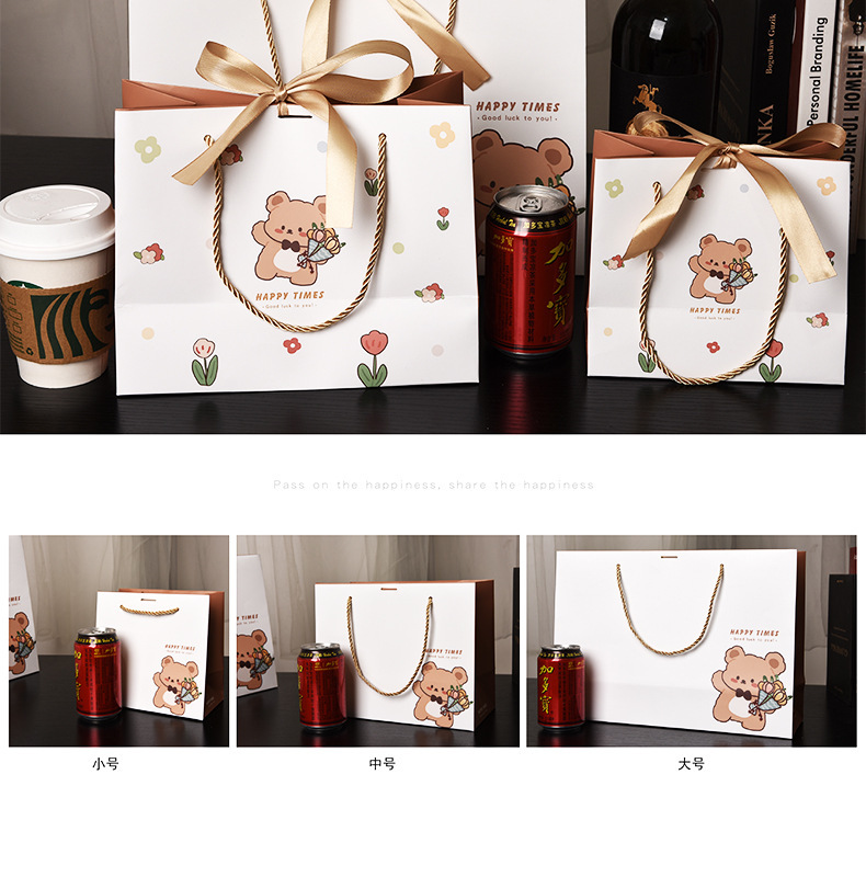 汎用アニメ熊ギフトバッグ誕生日プレゼント子供の日ホワイトカードスイーツお土産紙袋玩具包装