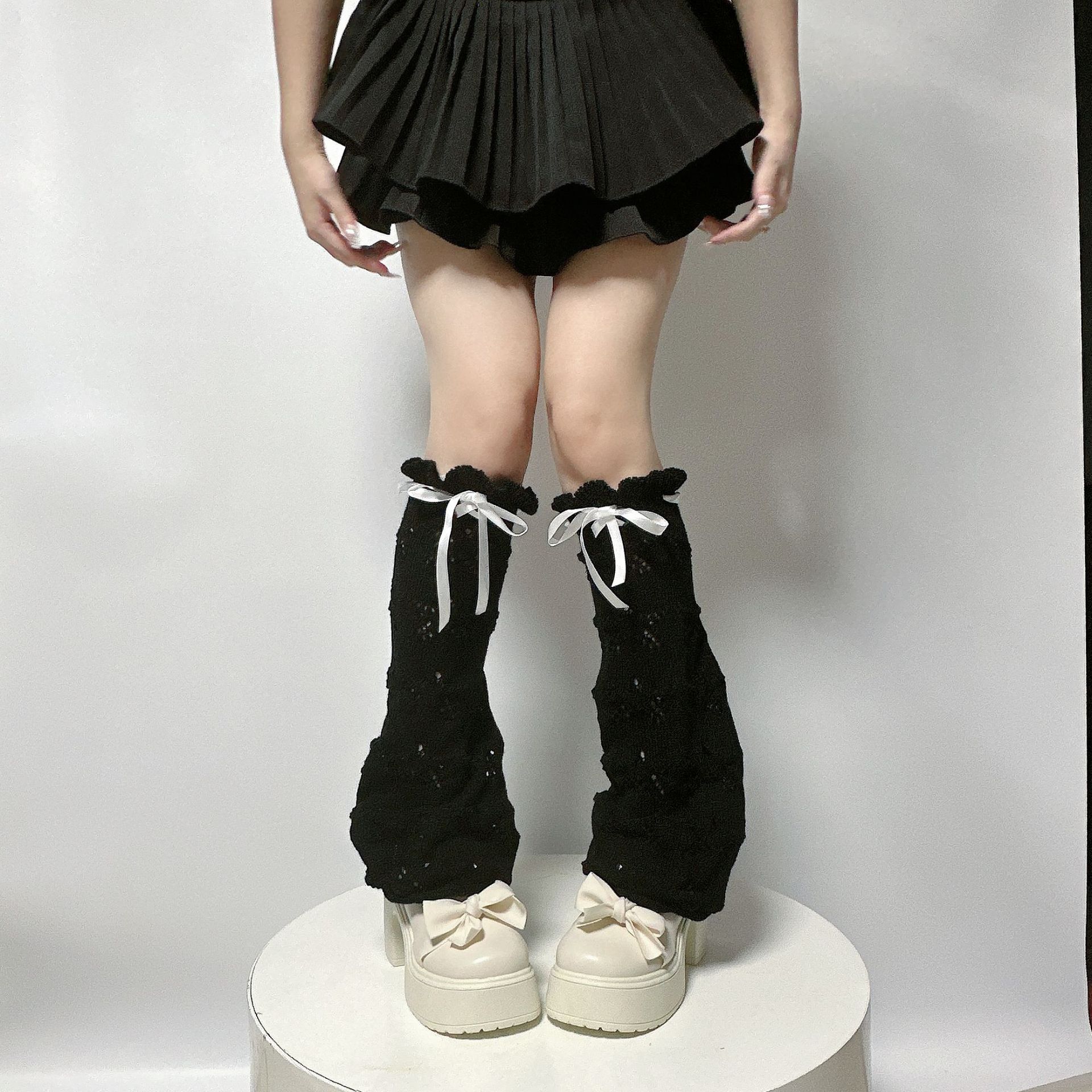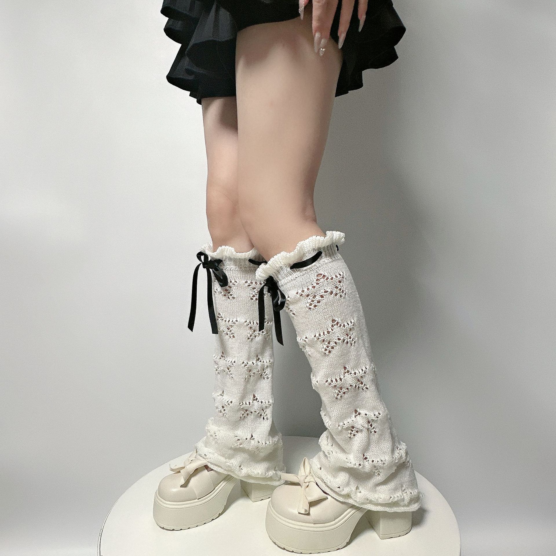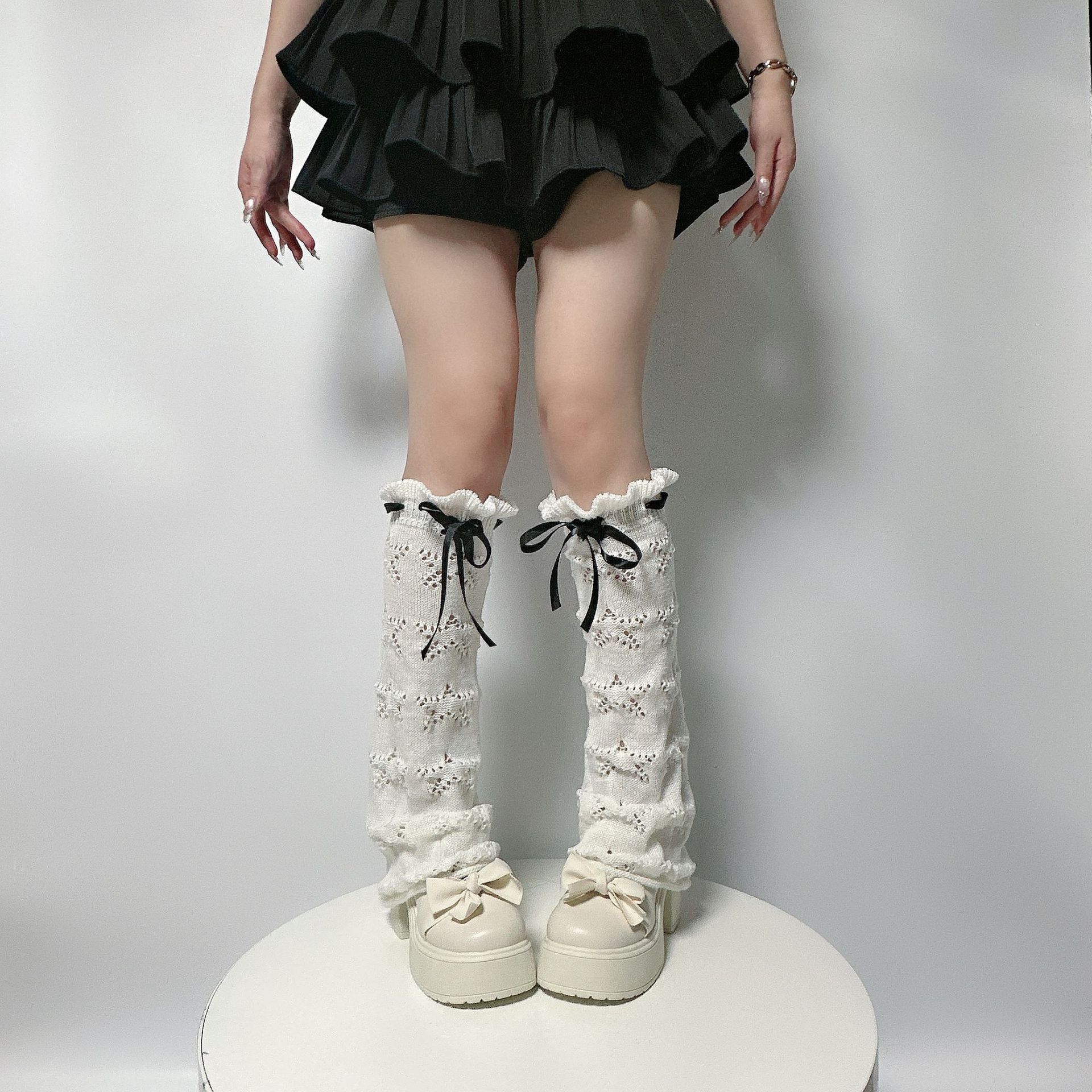 Y 2k亜文化の足カバー夏の透かし彫りのリボンの蝶結びの靴下カバー