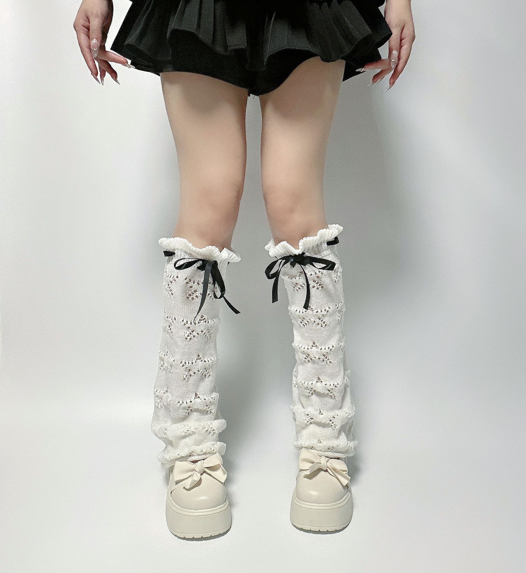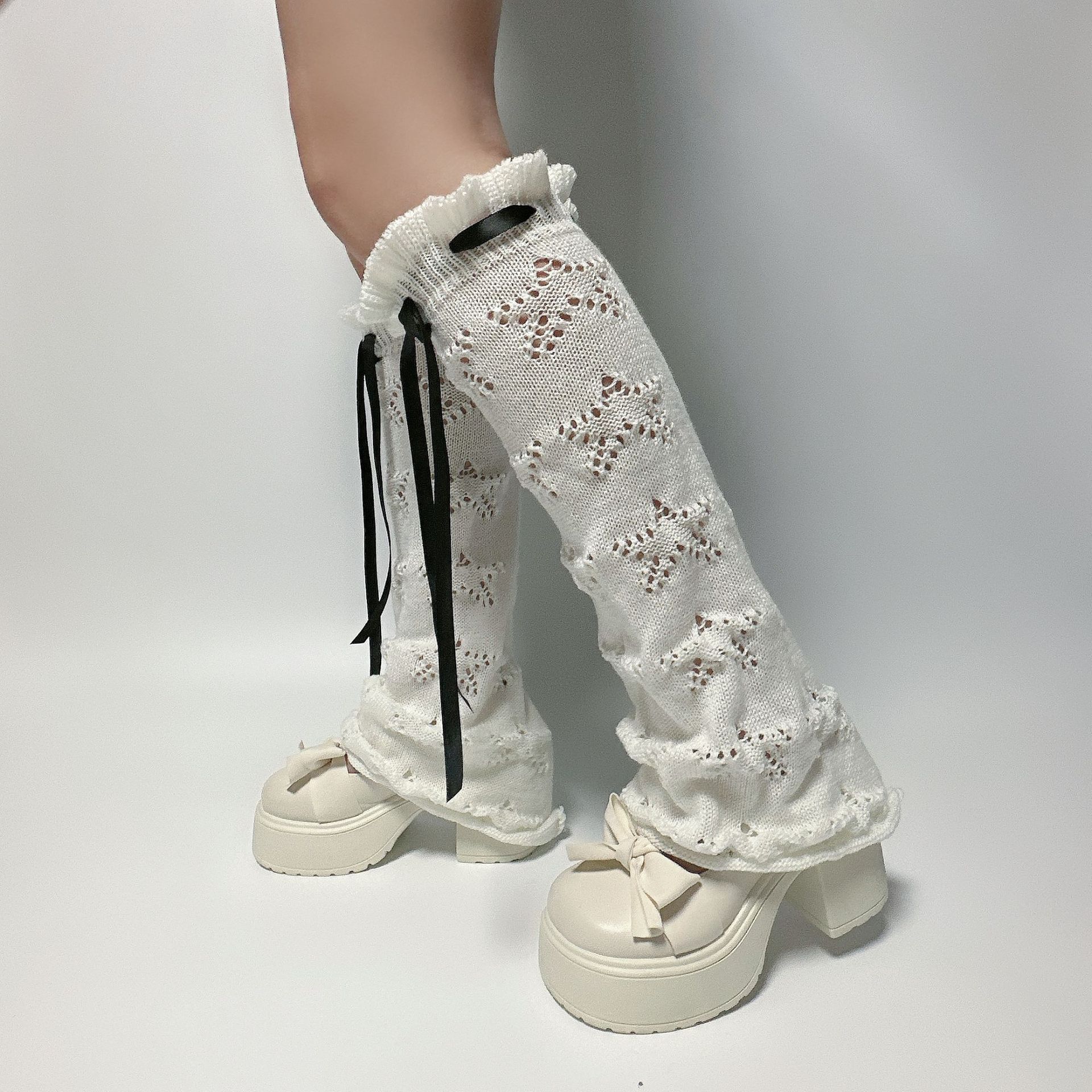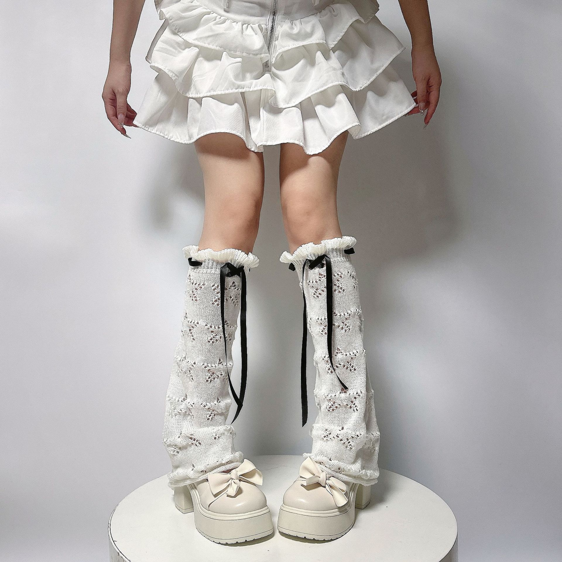 Y 2k亜文化の足カバー夏の透かし彫りのリボンの蝶結びの靴下カバー