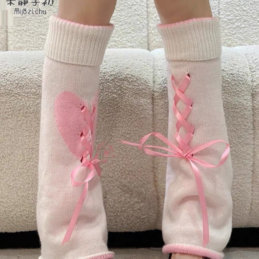 ロリータ広脚靴下セット愛十字y 2k女の子とふくらはぎセット冬保温アクリルニット靴下カバー