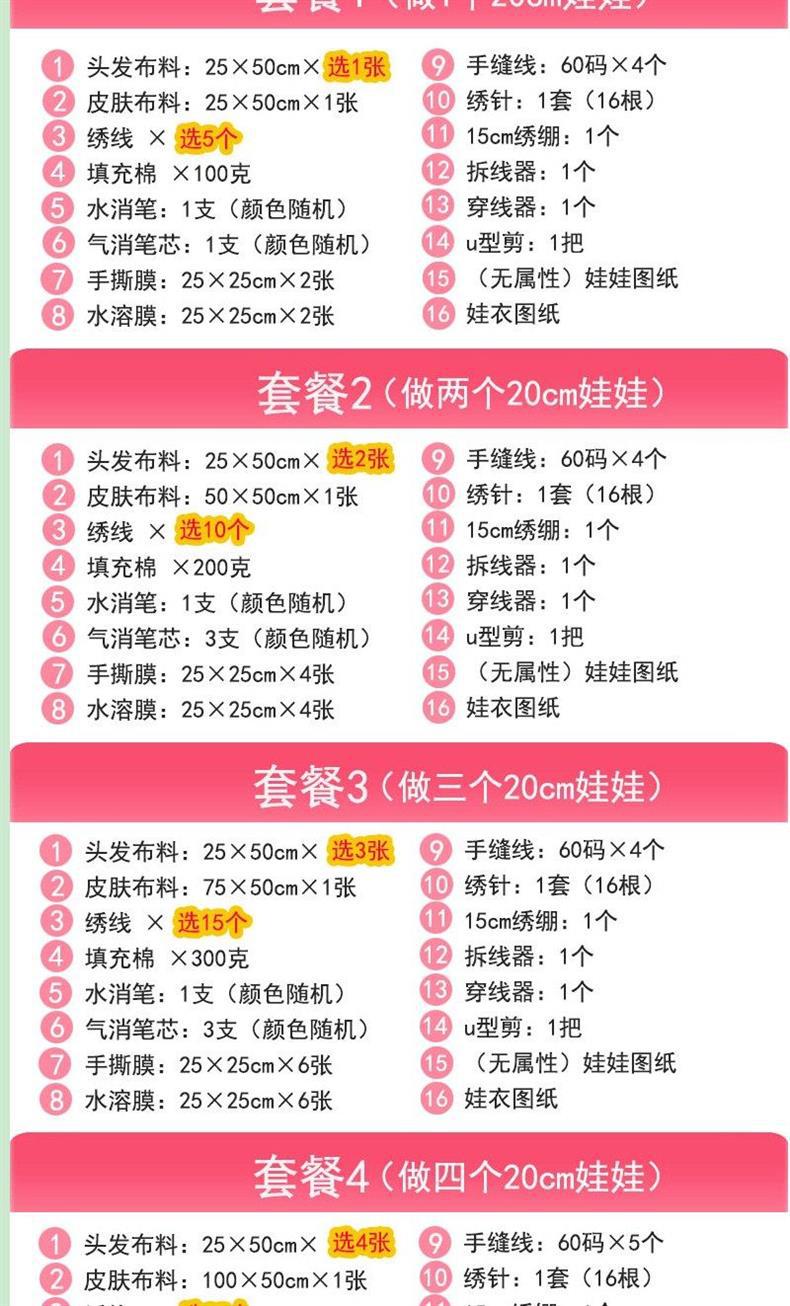 綿人形材料バッグ20cm 10cm人形の新しいセットdiy手作りぬいぐるみ人形人形の時間を送る