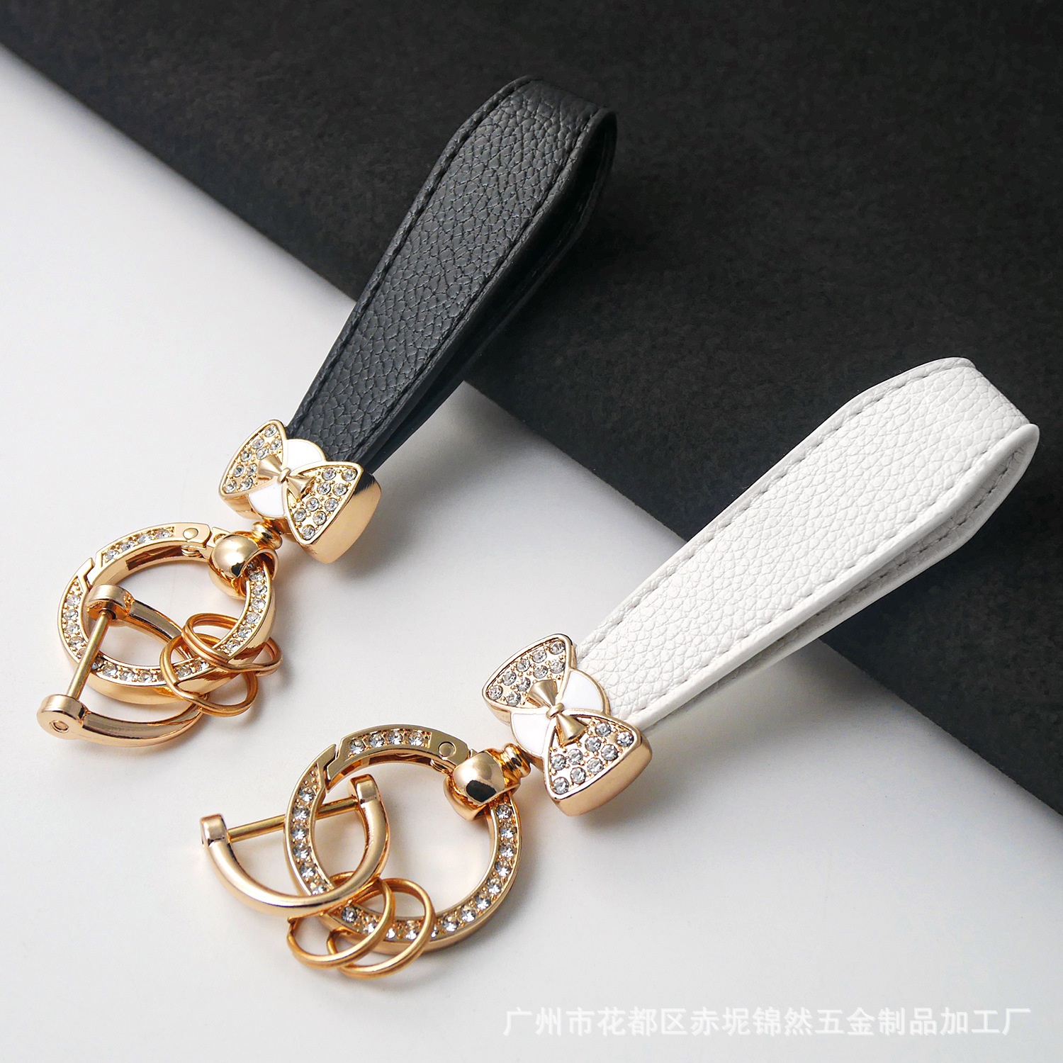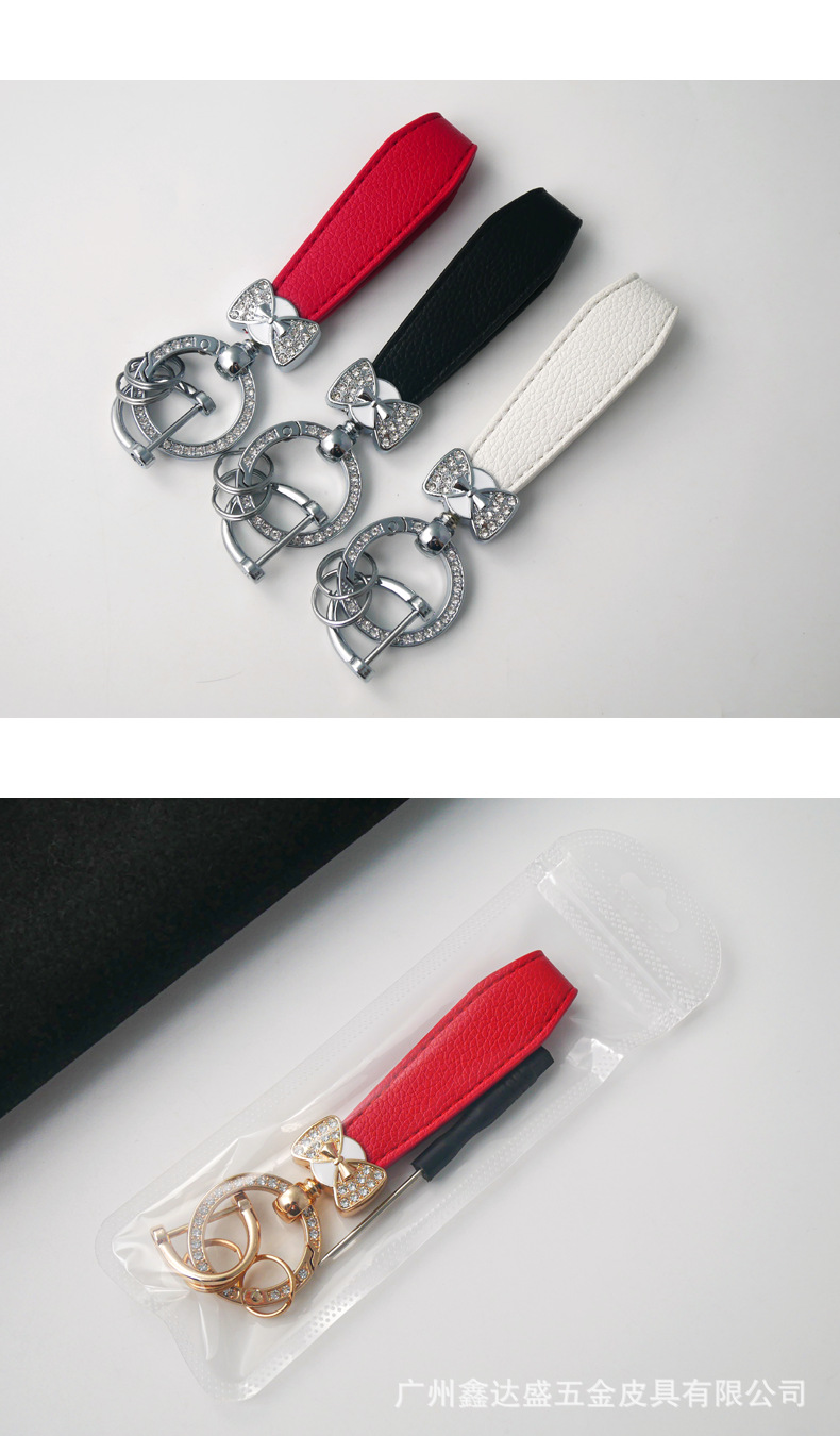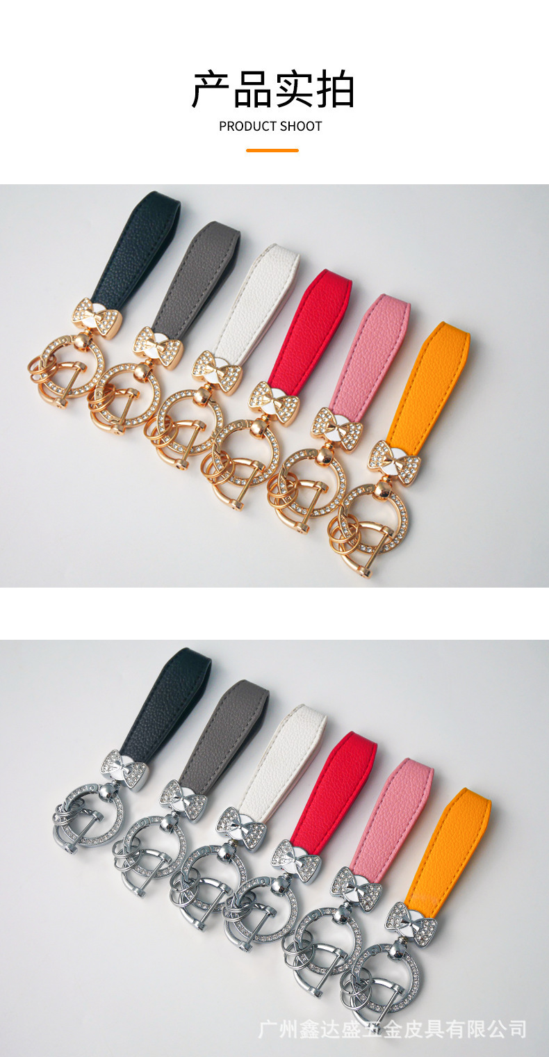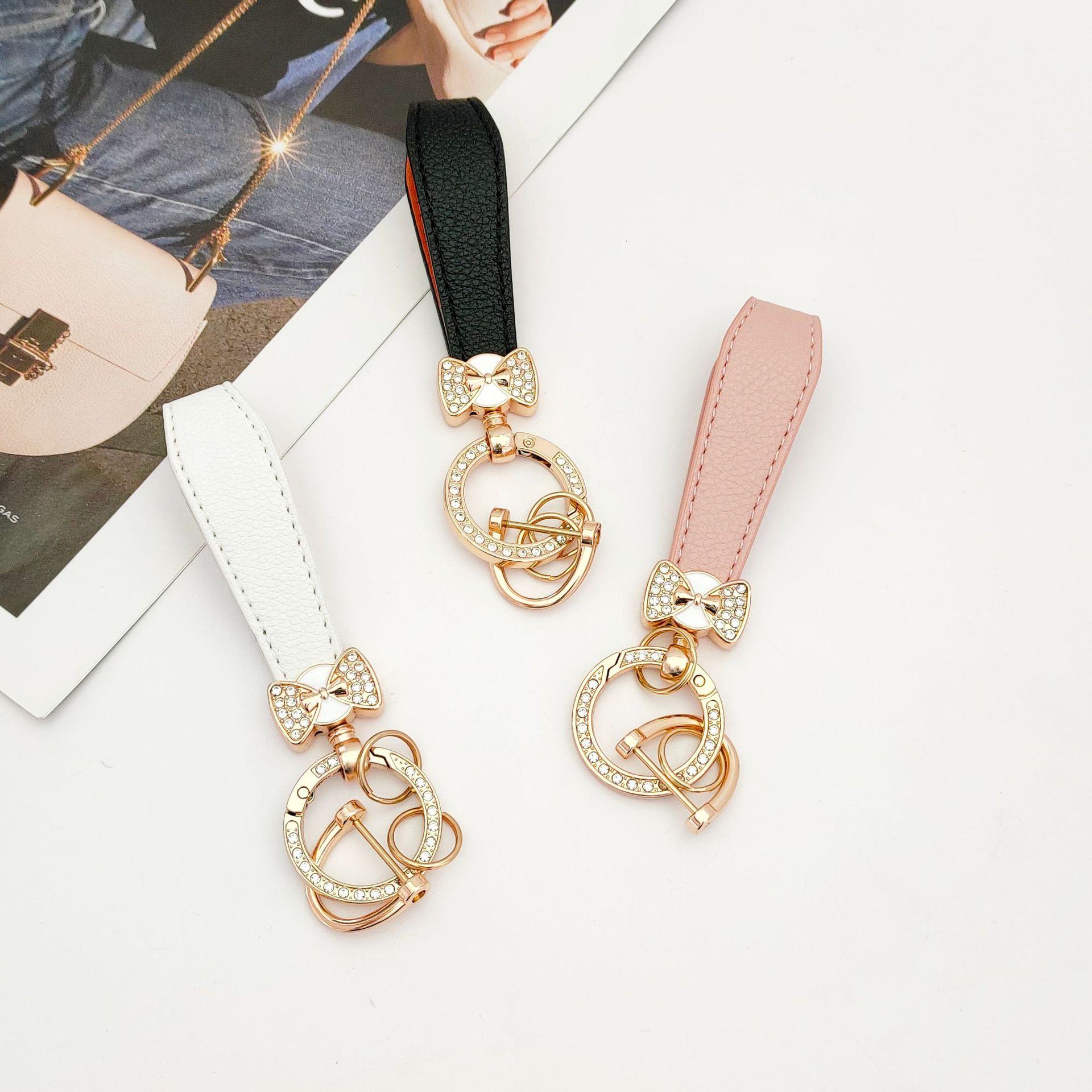 弓キーホルダー模造ダイヤモンドライト高級女の子車路面電車のキー絶妙なジュエリーメタルペンダントレザーロープチェーン