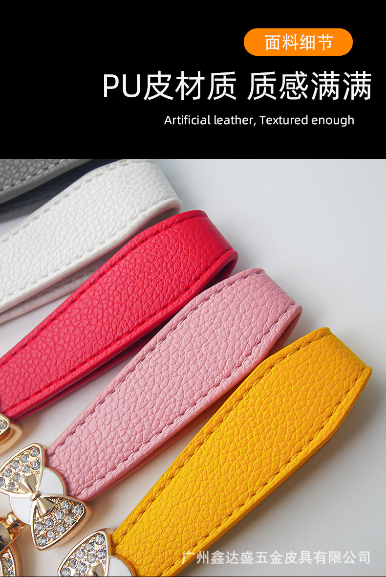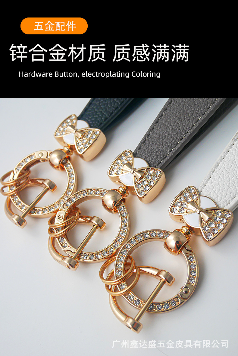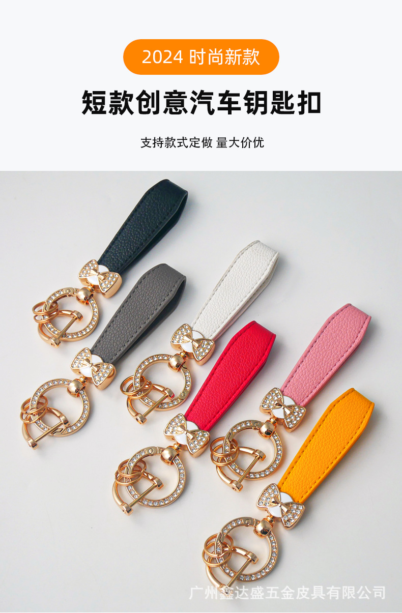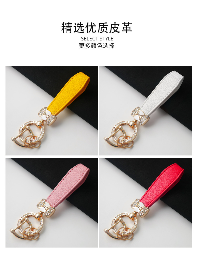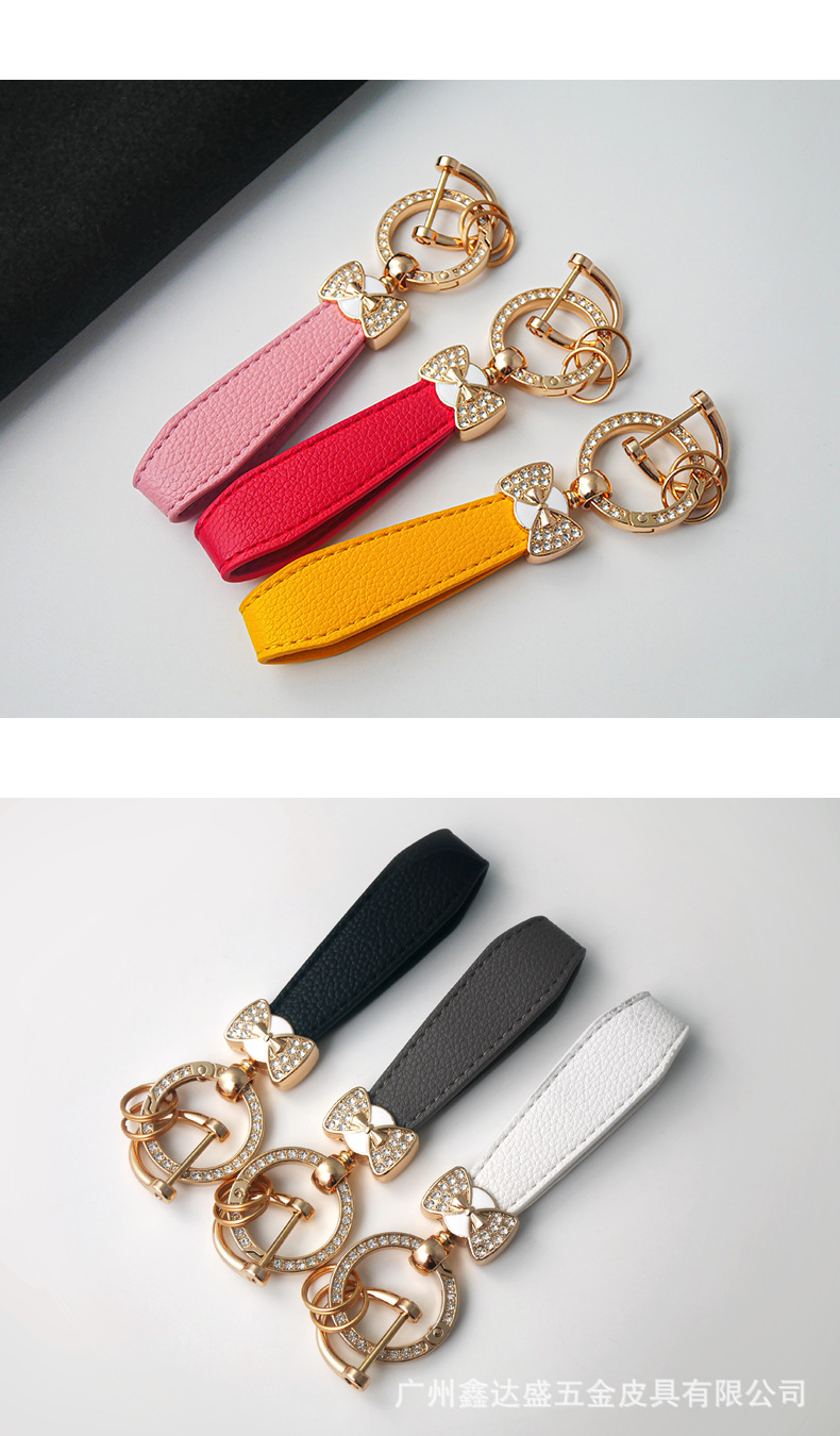 弓キーホルダー模造ダイヤモンドライト高級女の子車路面電車のキー絶妙なジュエリーメタルペンダントレザーロープチェーン