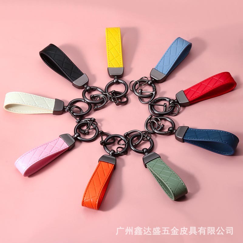 新型の自動車のキーホルダーの男性の丈夫な皮革の車の鍵の高級な等級は腰をなくして鍵のチェーンの小さい贈り物を掛けます。