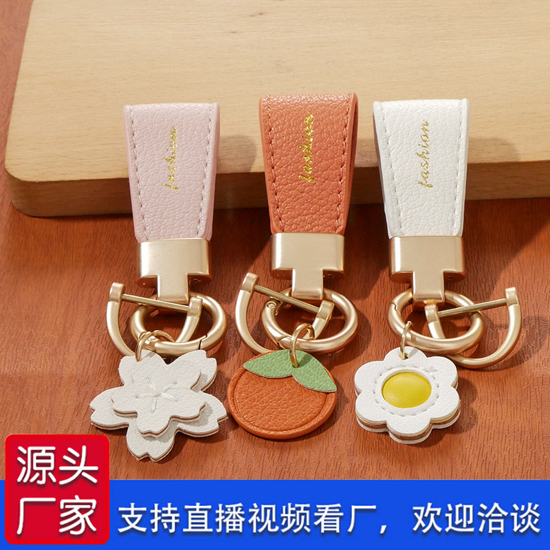フランスの車のキーホルダーブロンズレザーセットペンダントファッショナブルで絶妙なキーリングリングストラップウエストハンギングハイエンドスモールフレグランススタイル