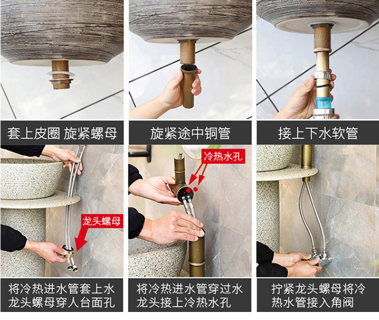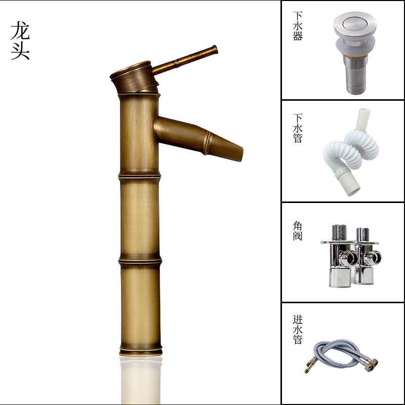 ヨーロッパアンティーク全銅カウンタートップ洗面器蛇口竹節洗面器浴室温冷洗面台洗面台