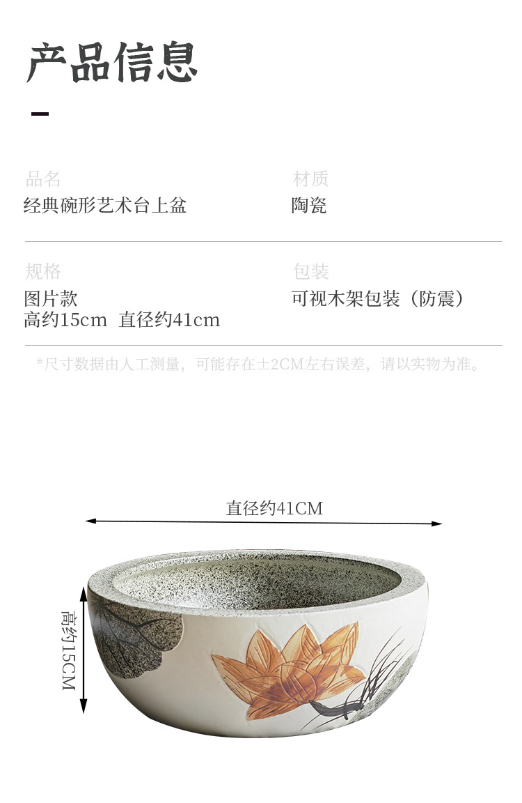 仕様 丸い蓮の彫刻鉢(付属品は含まれません),平口腰ドラム洗面器(付属品を除く),巻き口腰ドラム洗面器(付属品を除く),彫刻された蓮の宝庫 (付属品は含まれません),彫刻された楕円形の洗面器 (付属品は含まれません),楕円形洗面器(付属品を除く),大きな冬瓜盆地(付属品を除く),ビッググースエッグボウル(付属品は含まれません),ストレート洗面器(付属品を除く),タイヤ洗面器(付属品を除く),花びらポット(付属品を除く)