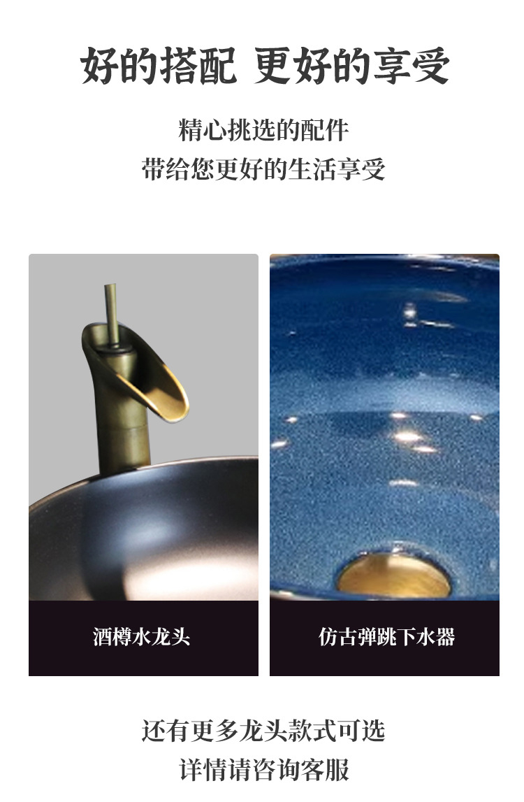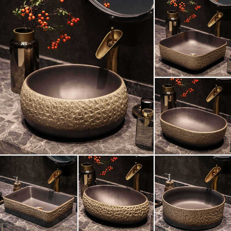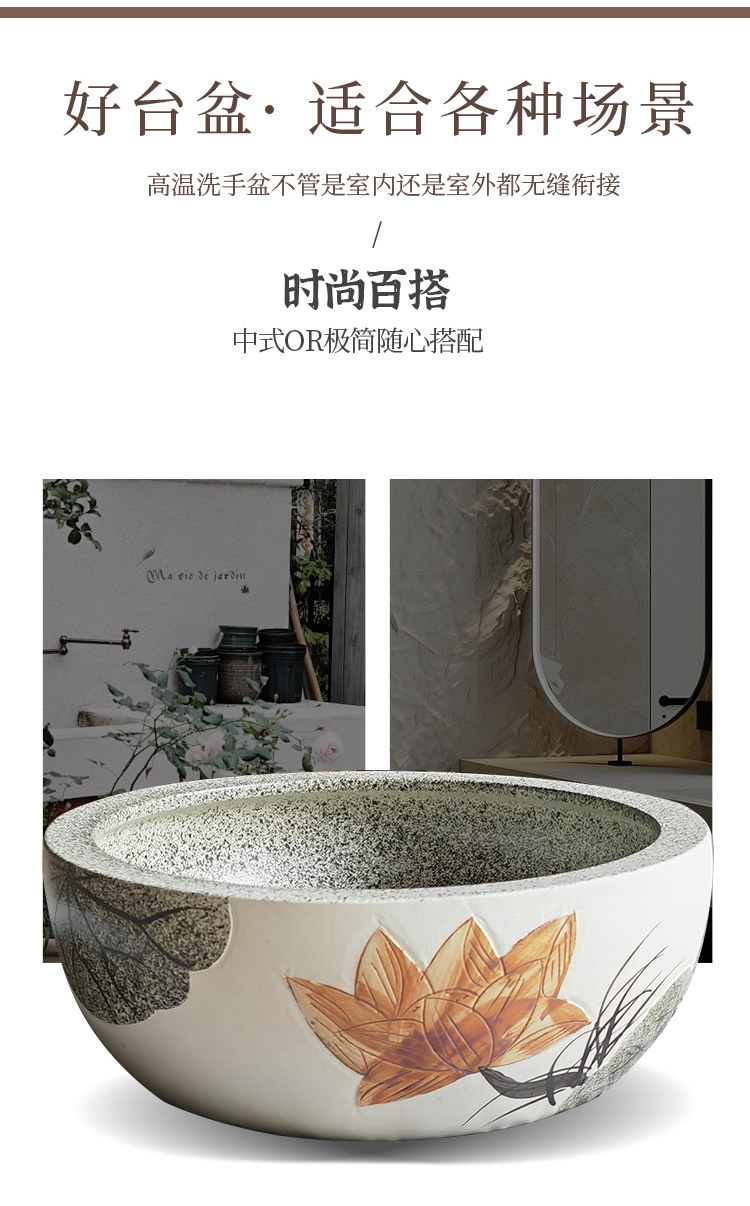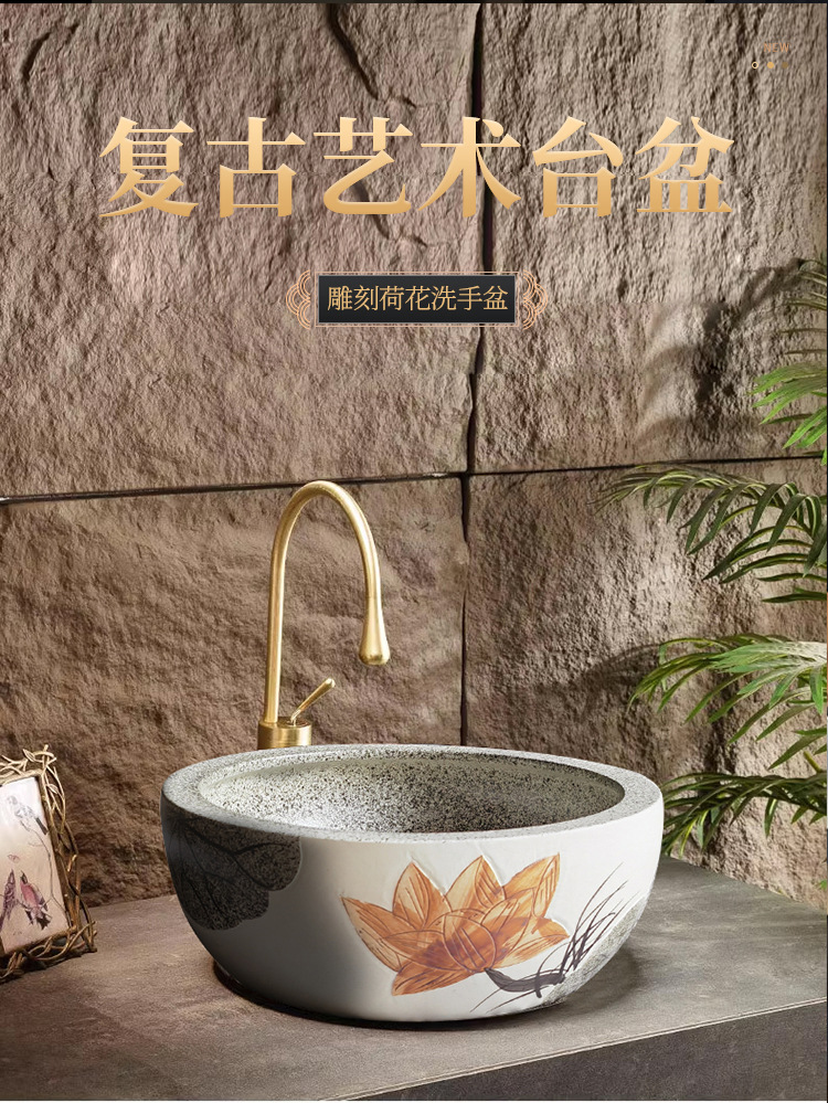 レトロ芸術台上盆洗面器中国式トイレ台盆ベランダ単盆陶磁器水盆円形洗面器