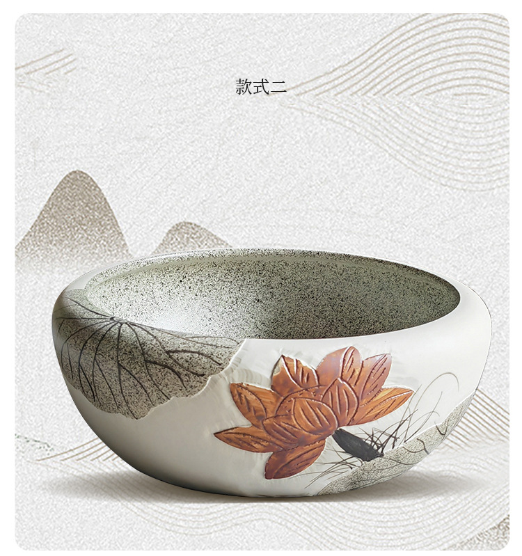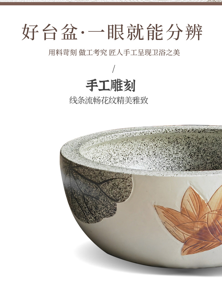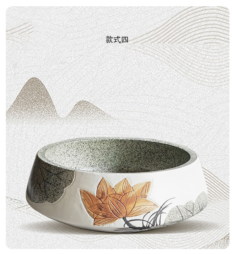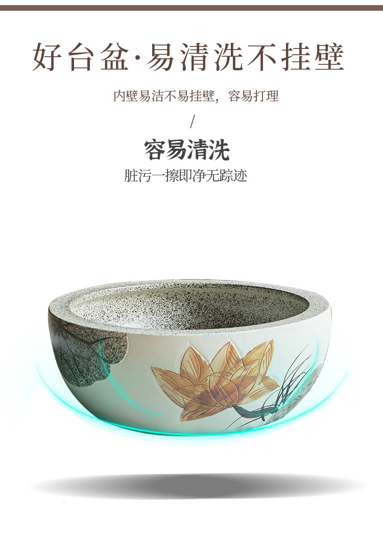 アンティーク芸術家庭用卓上盆彫刻ハス楕円陶磁器大サイズ洗面器家庭用洗面器新中国式