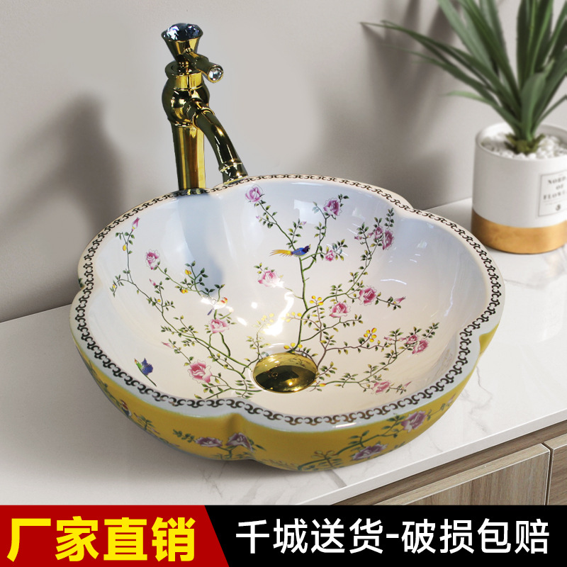 景徳鎮洗面器陶磁器台上盆洗面器花弁形陶磁器洗面池芸術台盆家庭用ヨーロッパ式