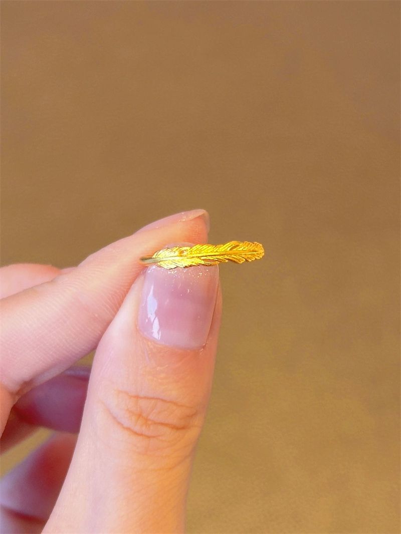 軽豪華な高級感のある羽毛の指輪の女性ビンate森系の百合の指環の小さい大衆の個性のデザイン感の食指戒