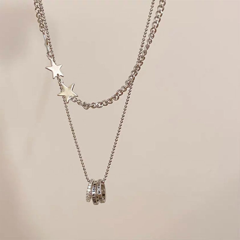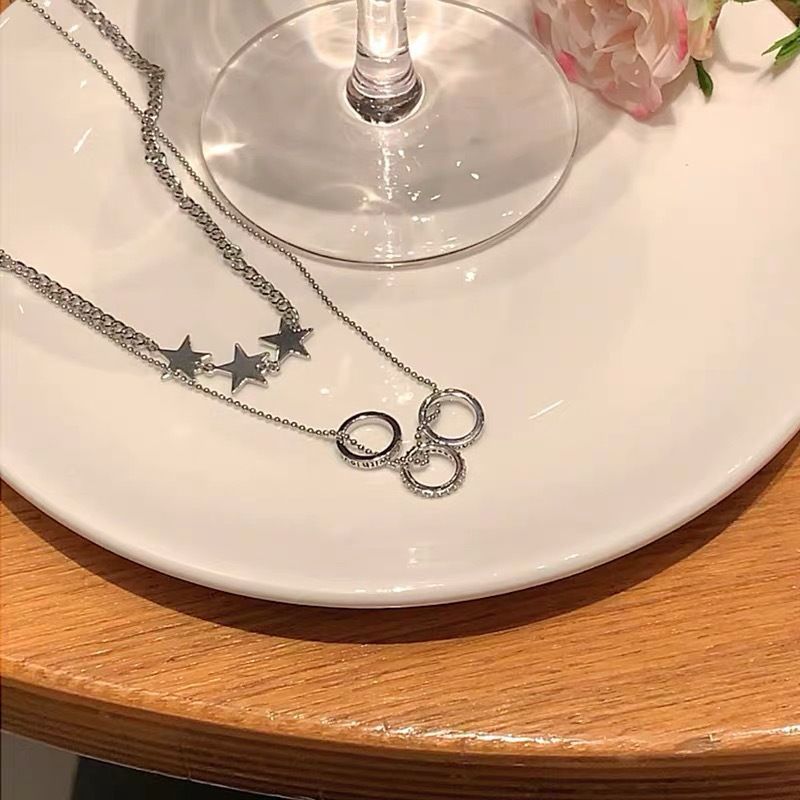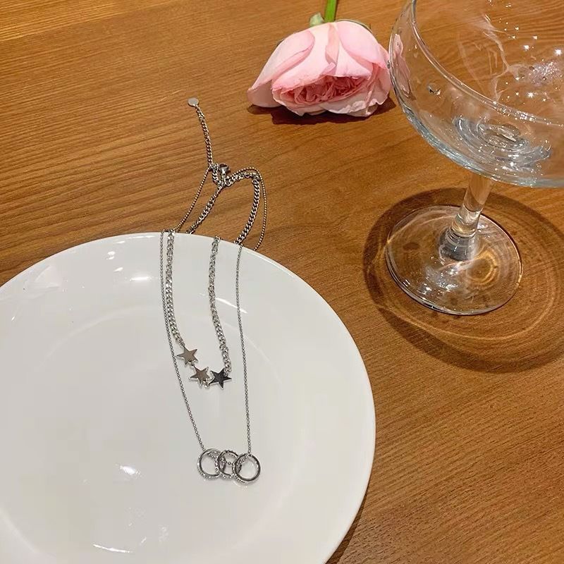 ファッション韓国版新型二重星ネックレス女性シンプルな百合小衆デザイン優雅気質円環鎖