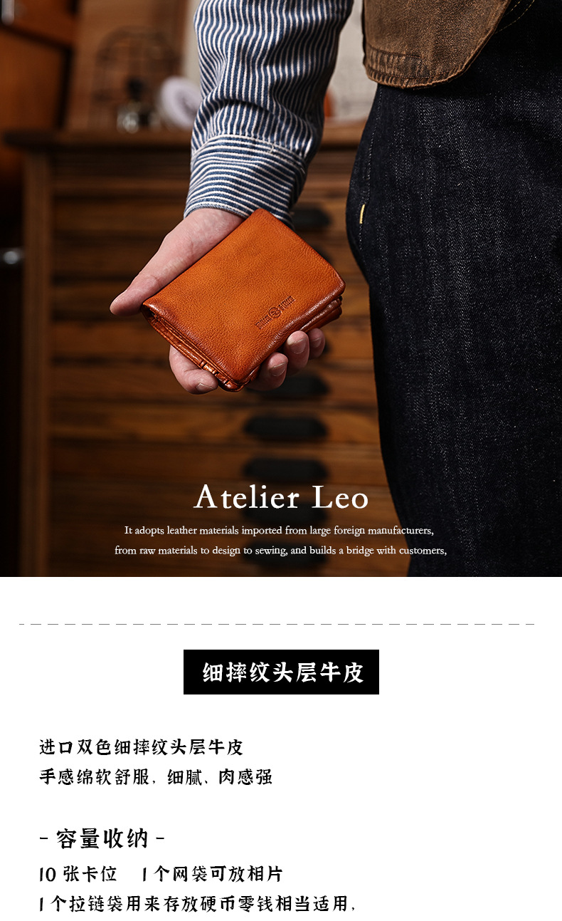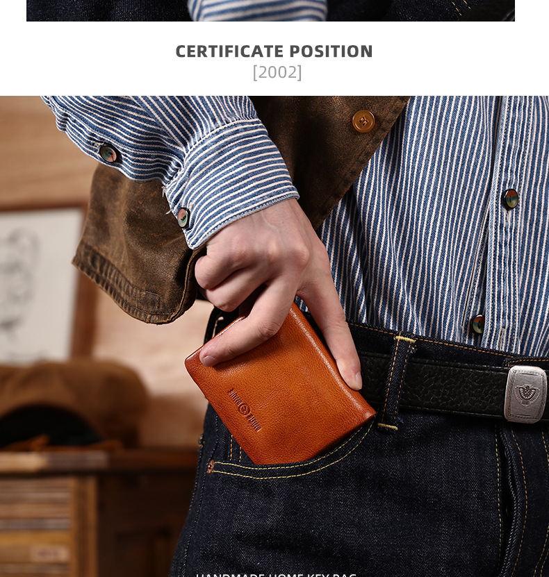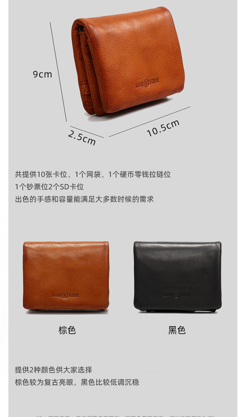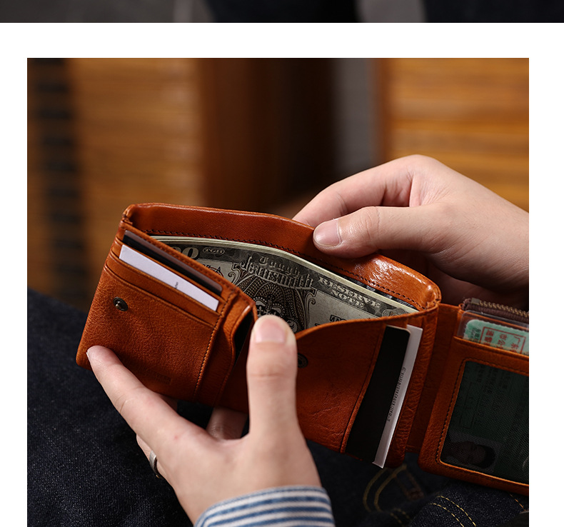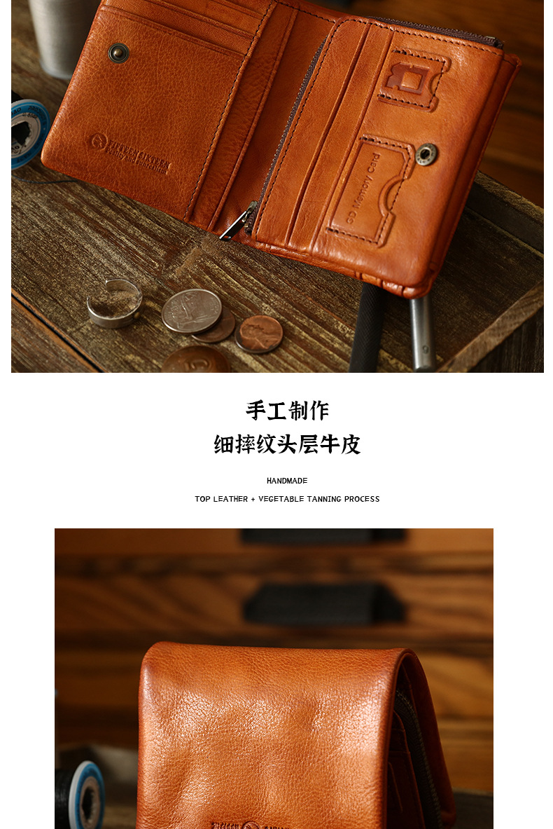 CJW/草匠王頭層牛革財布男本革ショートタイプ手作りマルチカード位置消磁盗難防止カード財布財布