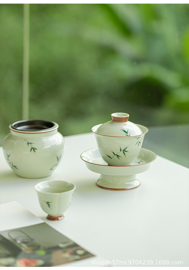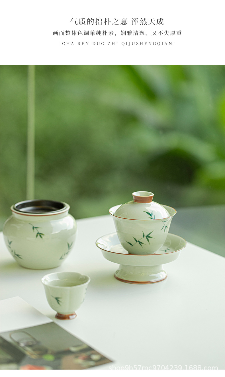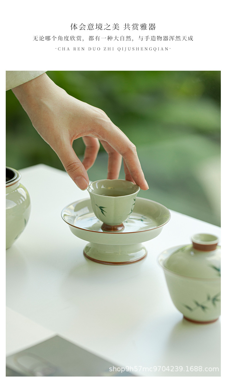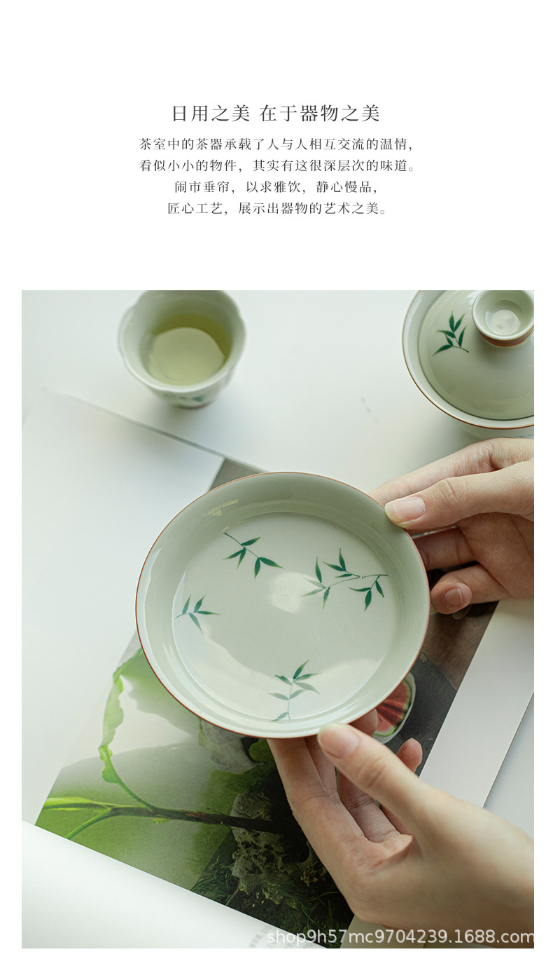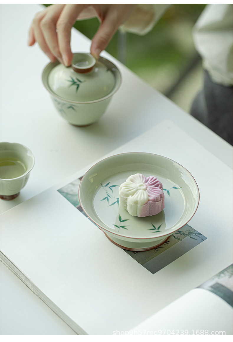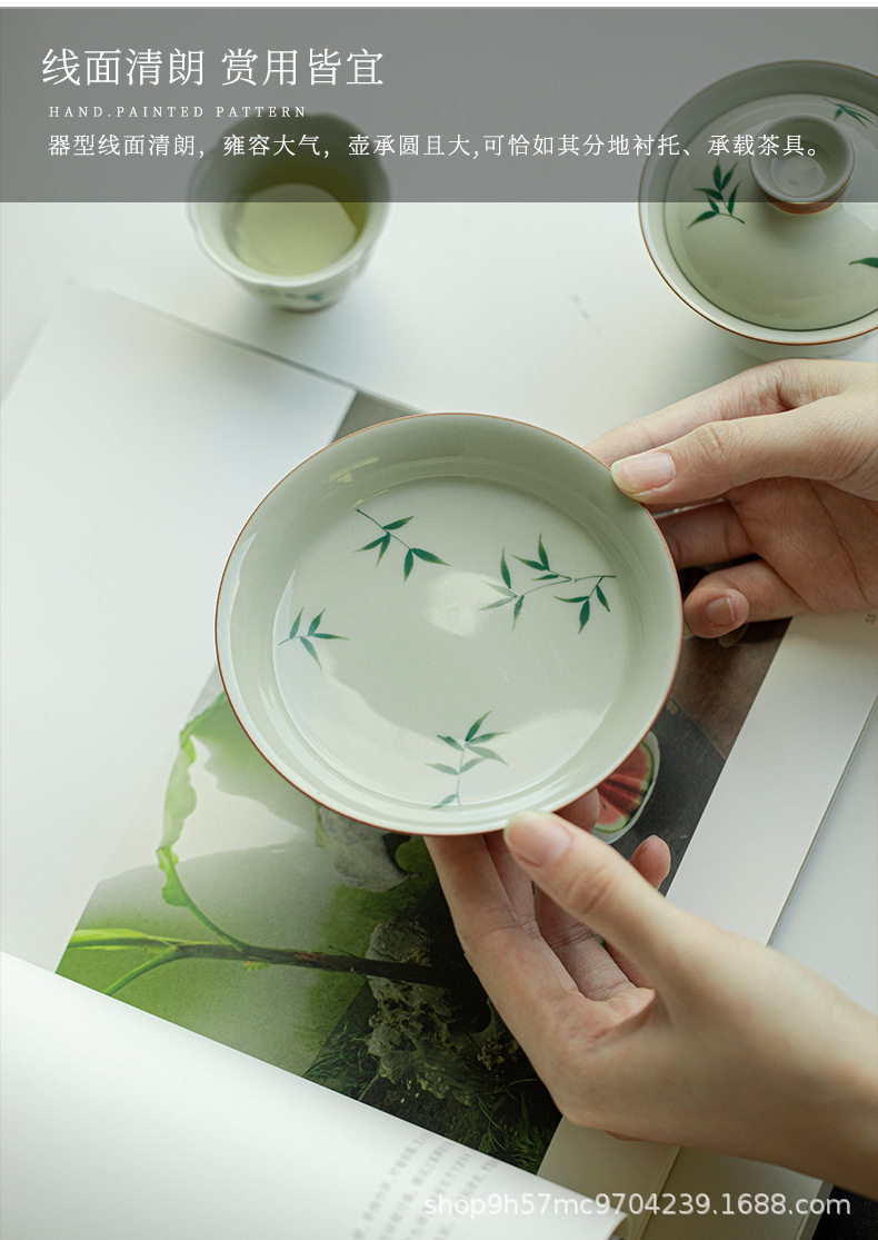 禧マグネシウム壺承秘青手描き青竹模造宋高足茶点盤工夫茶器ティーポットシャーシセラミック乾燥泡