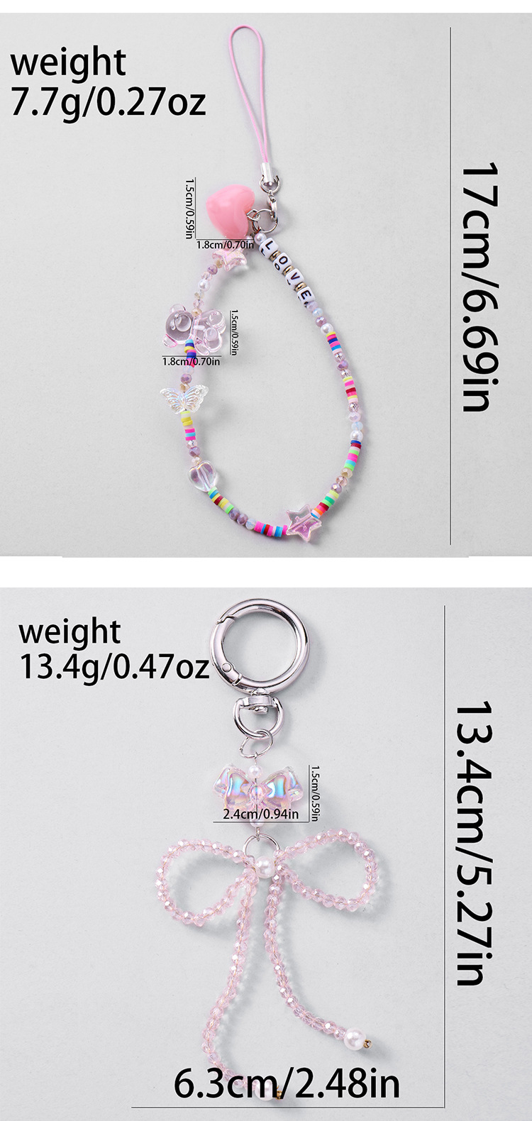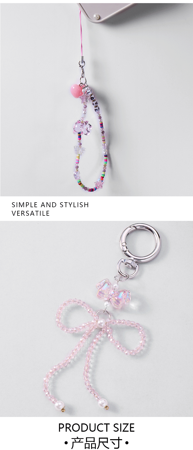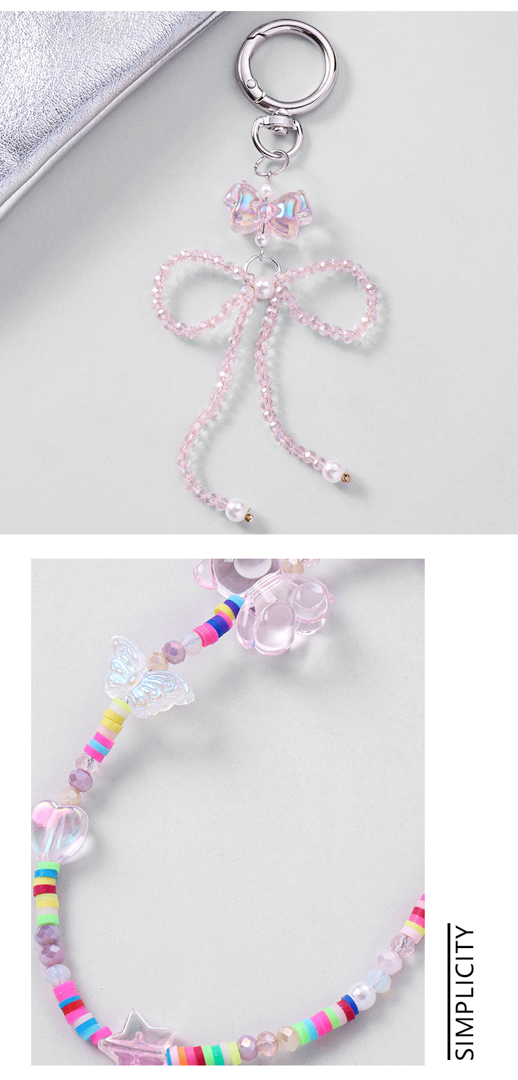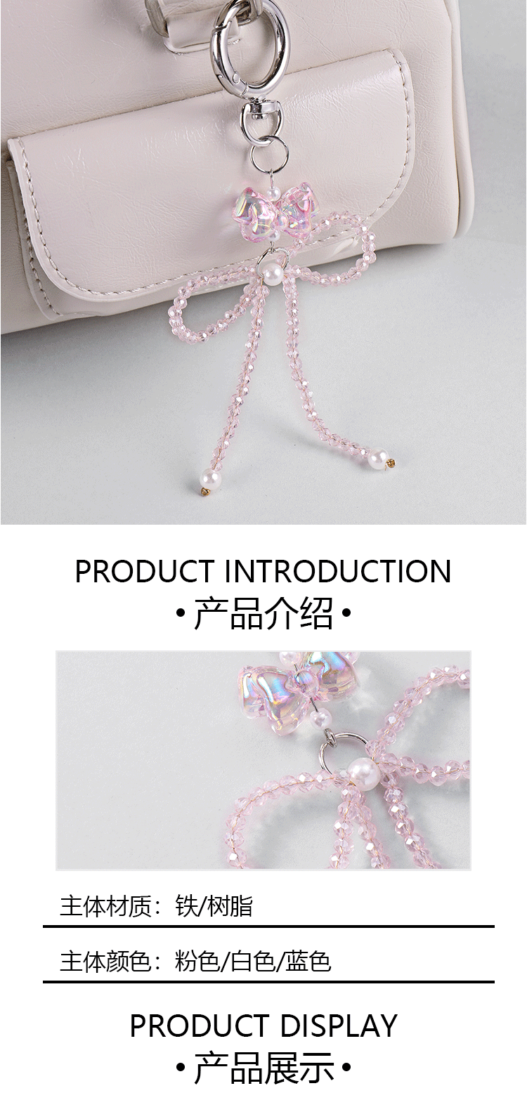 クロスボーダー爆金ins甘美カジュアルシンプルビーズ模造水晶蝶ネクタイ立体ベアーキーホルダーペンダント