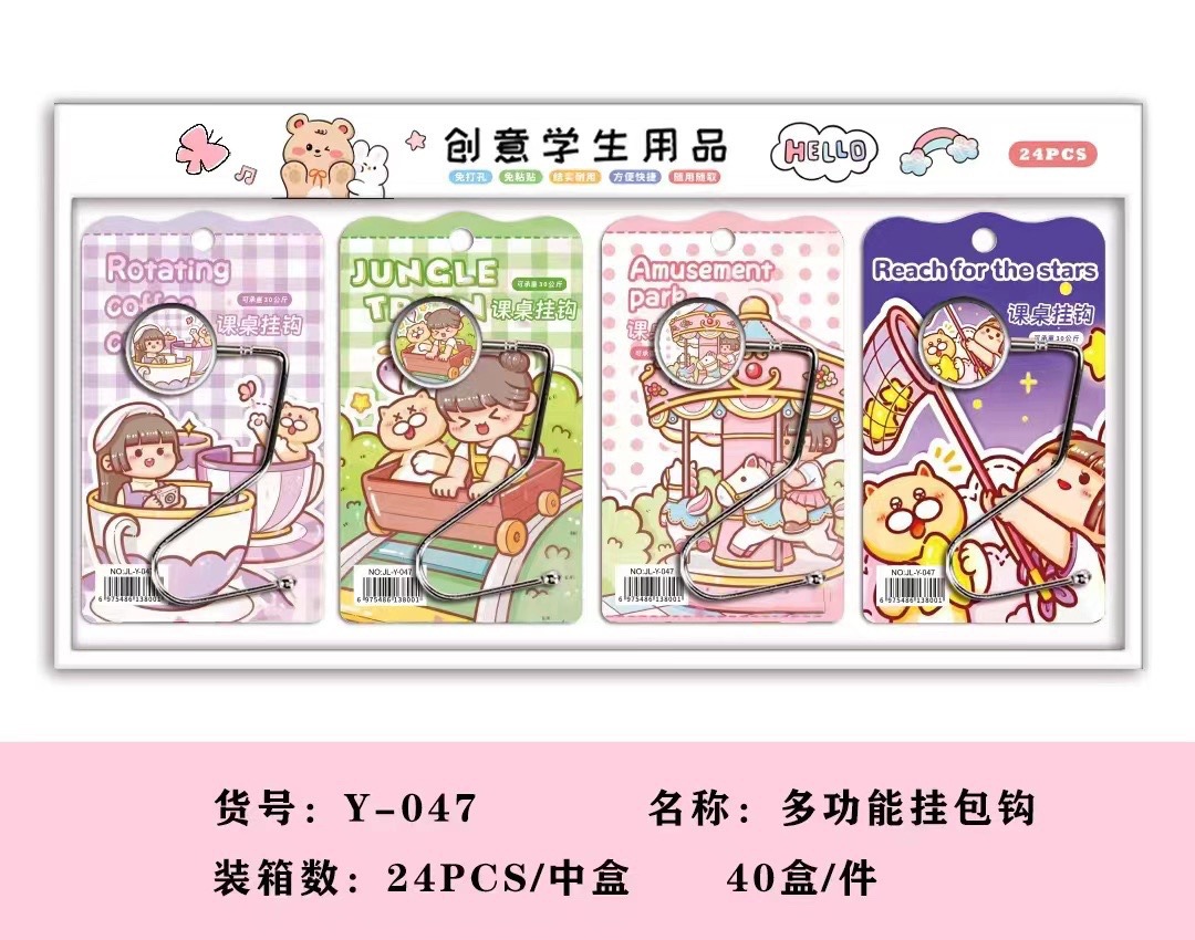 卸売り独立包装学生机フックアニメかわいい側面学校回転机サイドかばんフック