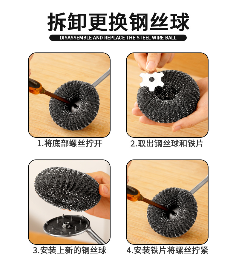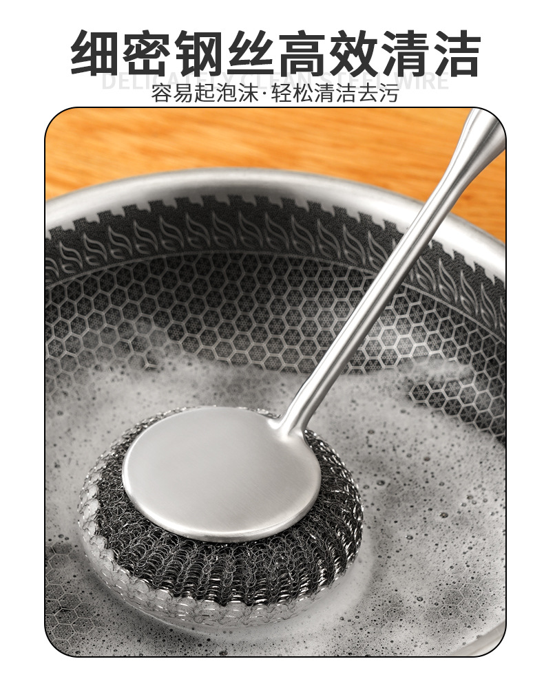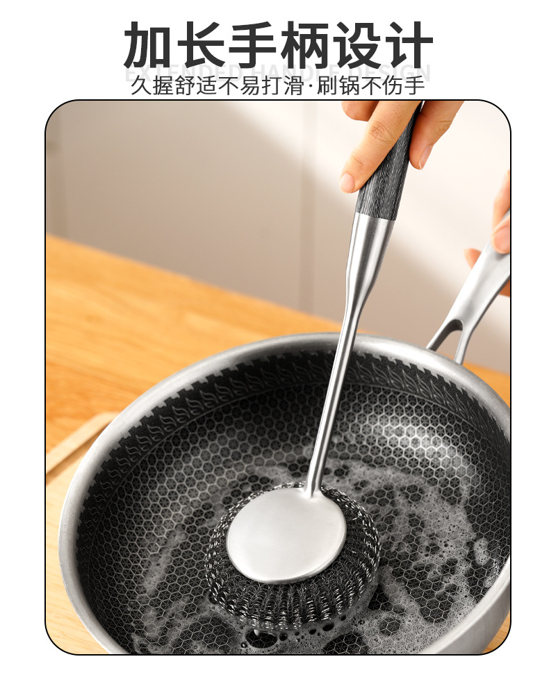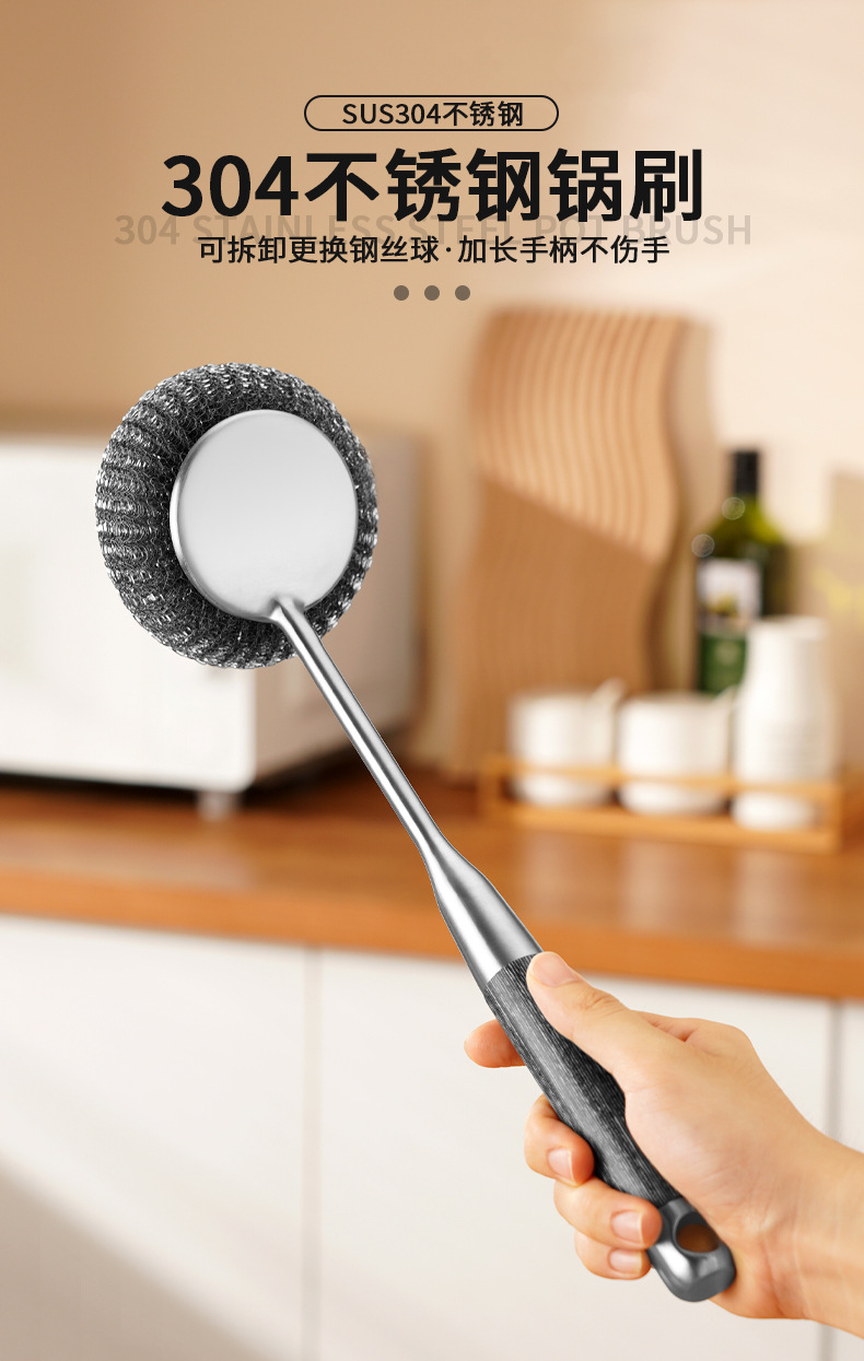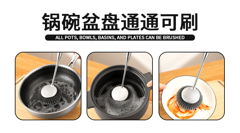 304ステンレス鍋ブラシ家庭用キッチン鉄線ボールブラシ食堂の皿洗い鍋はブラシ鍋の神器を交換できる