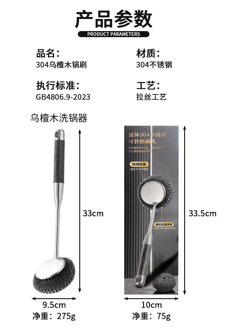 LJY-黒檀ポットウォッシャー,黒檀ステンレスポットブラシ(ロングスタイル),黒檀ステンレスポットブラシ(ショートスタイル)