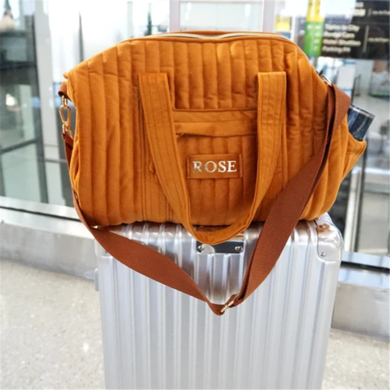 ストライプベルベットママトラベルバッグ短距離軽量多機能大容量ポータブルショルダーバッグ旅行収納バッグ