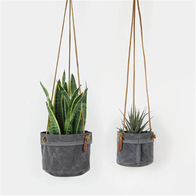 クロスボーダー販売キャンバス鉢植え装飾バッグ屋内植木鉢保護レザーカバー寝室バルコニーキャンバスハンギングバスケット