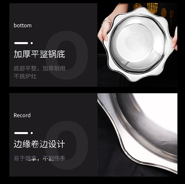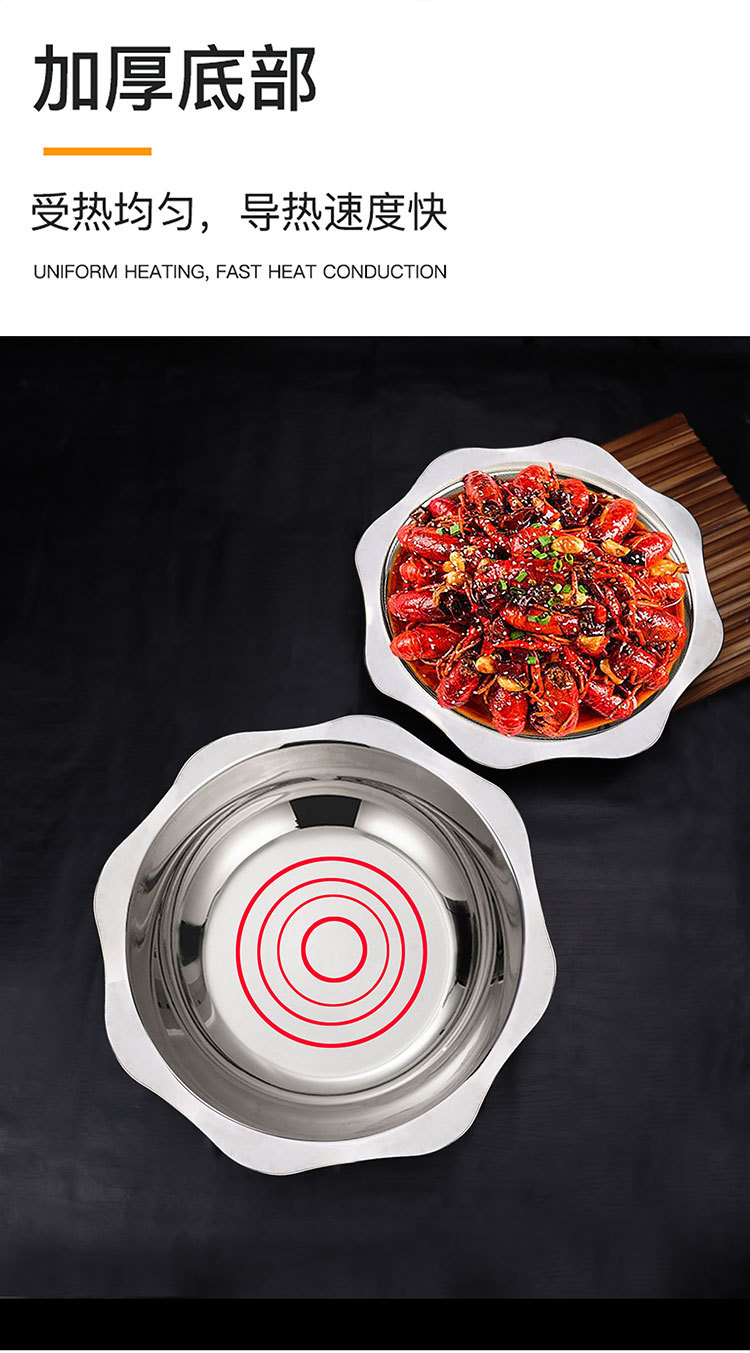 不锈钢火锅盆商用电磁炉饭店专用太阳盆八角清汤盆酸菜鱼家用涮锅
