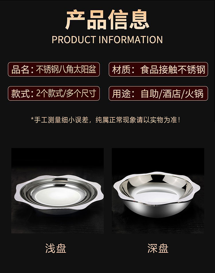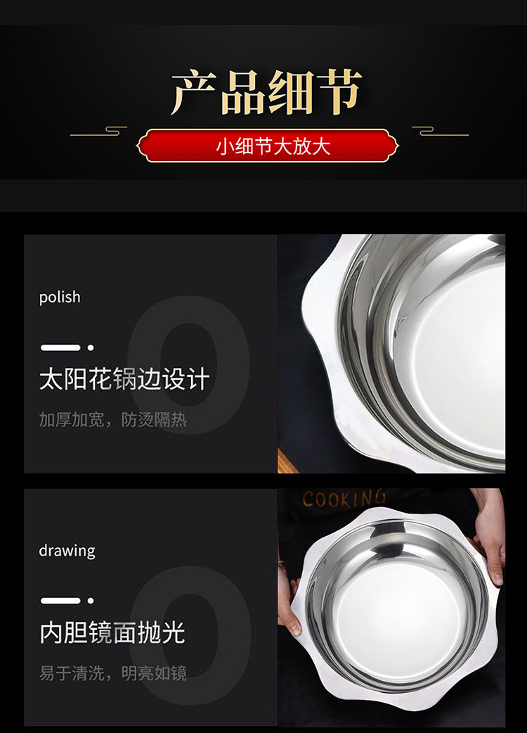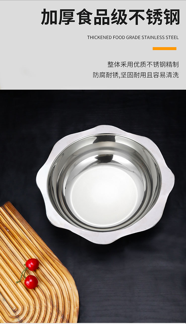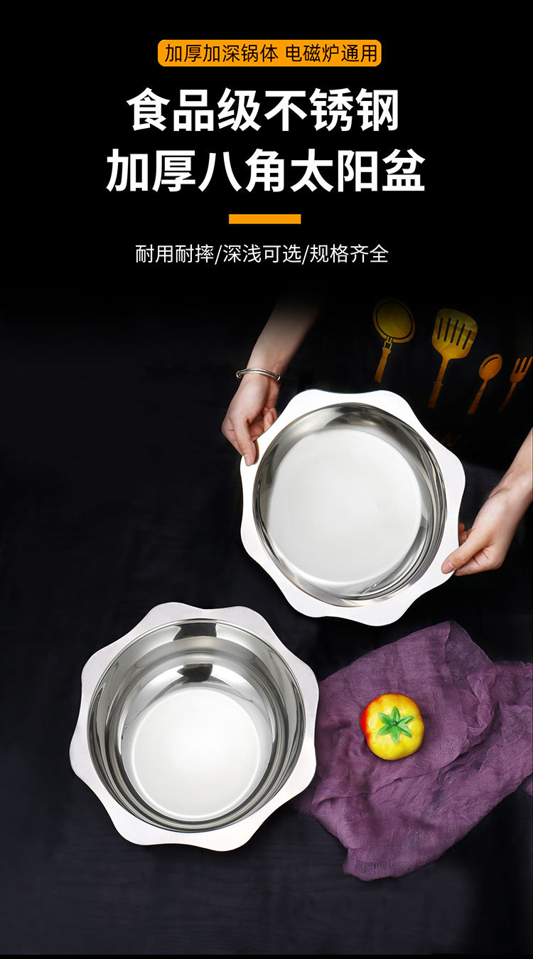 不锈钢火锅锅盆商用电磁炉饭店专用太阳盆八角清汤盆酸菜鱼鸳鸯锅