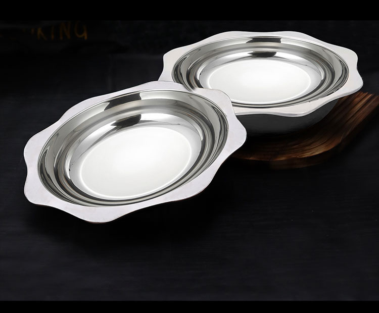 304ステンレスの冷たい皮のどらの皿の双耳の円形の大きいサイズの餅の皿の製作道具の平底の蒸し料理の食事の皿のトレー