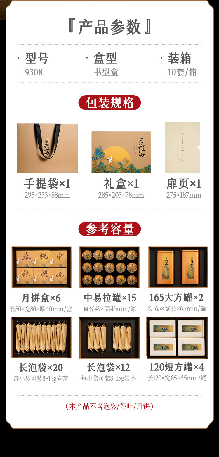 仕様とモデル 9308-月満江山-6月餅; 製品には月餅、お茶、バブルバッグは含まれません,9308-Yue Man Jiangshan-12 ロングバブルバッグ-白い裏地;製品には月餅、茶葉、バブルバッグは含まれません,9308-月満江山-12ロングバブルバッグ-黒裏地;製品には月餅、茶葉、バブルバッグは含まれません。,9308-月満江山-20ロングバブルバッグ-白い裏地;製品には月餅、茶葉、バブルバッグは含まれません。,9308-月満江山-20ロングバブルバッグ-黒裏地;製品には月餅、茶葉、バブルバッグは含まれません。,9308-Yue Man Jiangshan-2 大きな正方形の瓶; 製品には月餅、お茶、バブルバッグは含まれません,9308-Yue Man Jiangshan-4 ショートスクエア缶; 製品には月餅、お茶、バブルバッグは含まれません,9308-Yue Man Jiangshan-15缶; 製品には月餅、お茶、バブルバッグは含まれません。