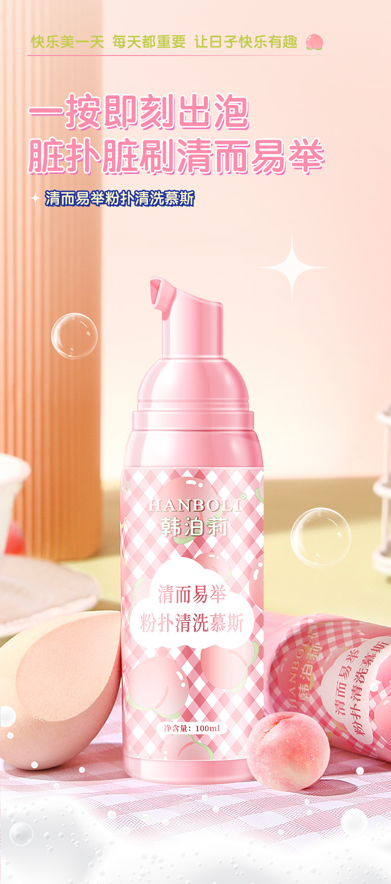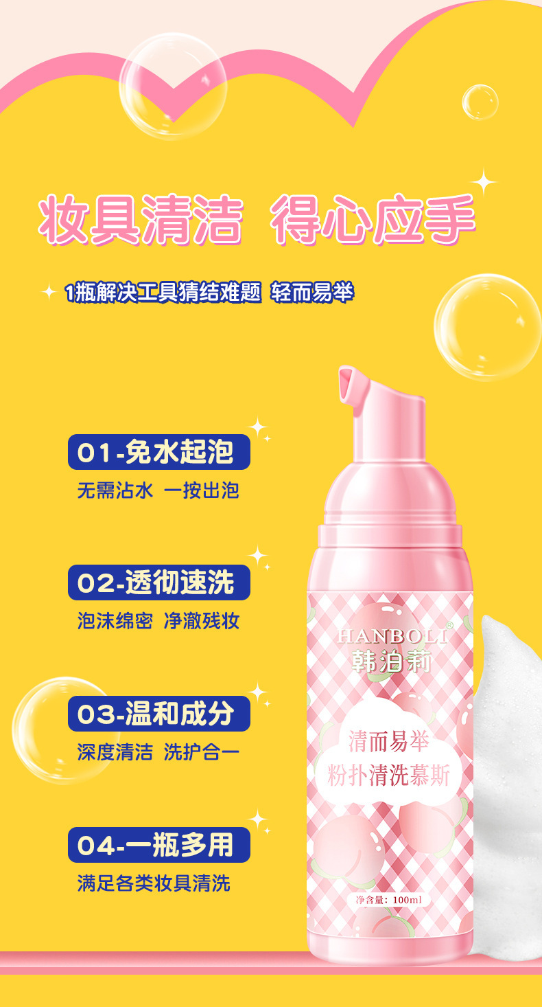 韓泊莉パフ洗浄ムーススポンジ美化粧卵化粧ブラシ専用安全清潔手洗浄液