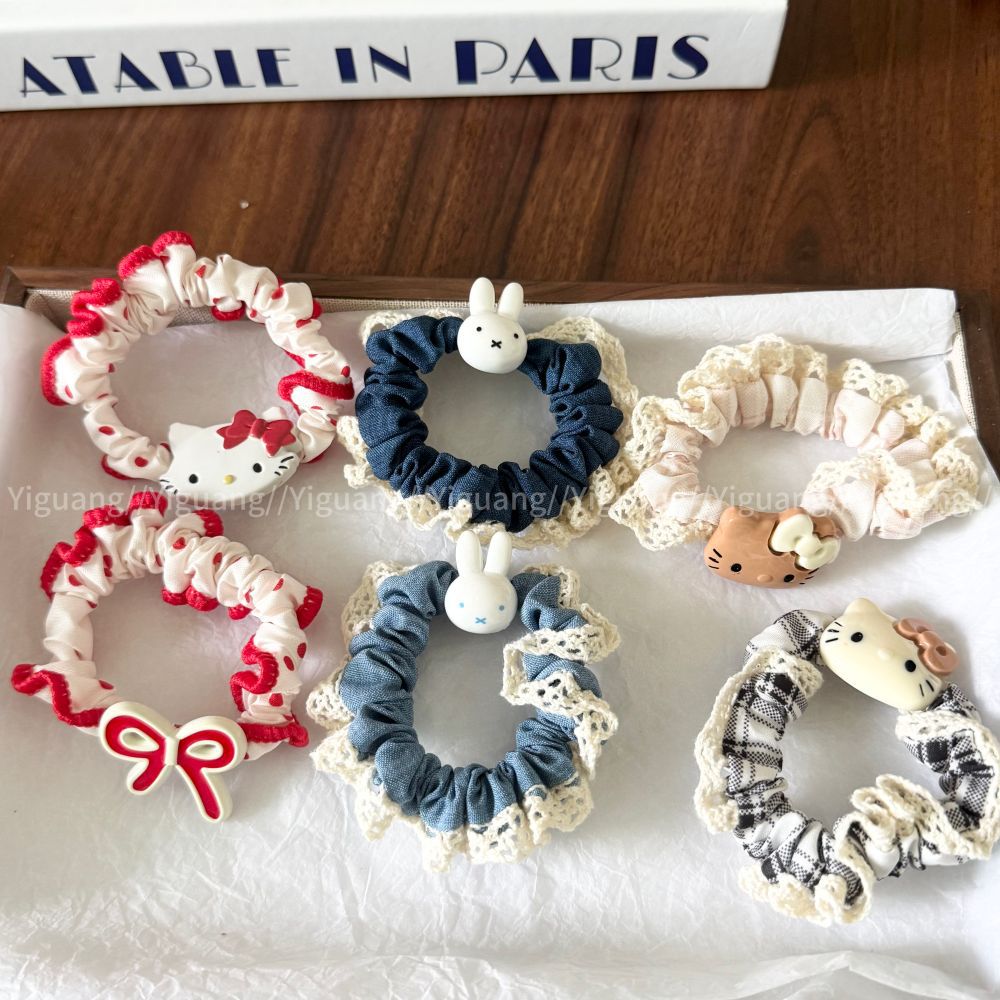 甜酷风格子猫咪花边小肠发圈卡通甜美少女风马尾发绳发饰批发新款