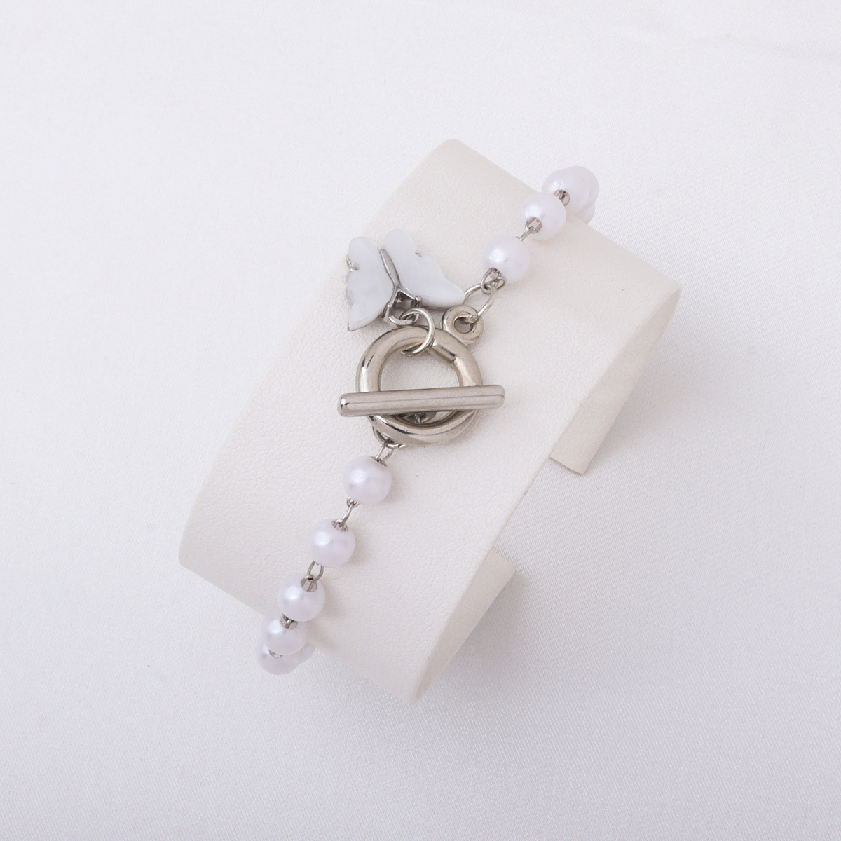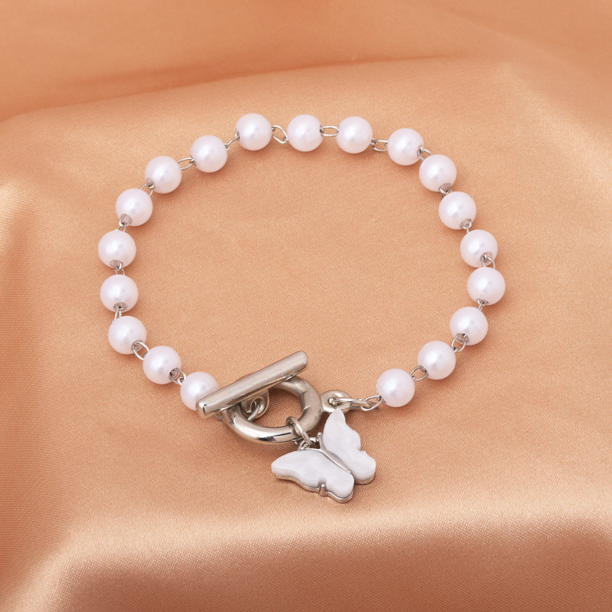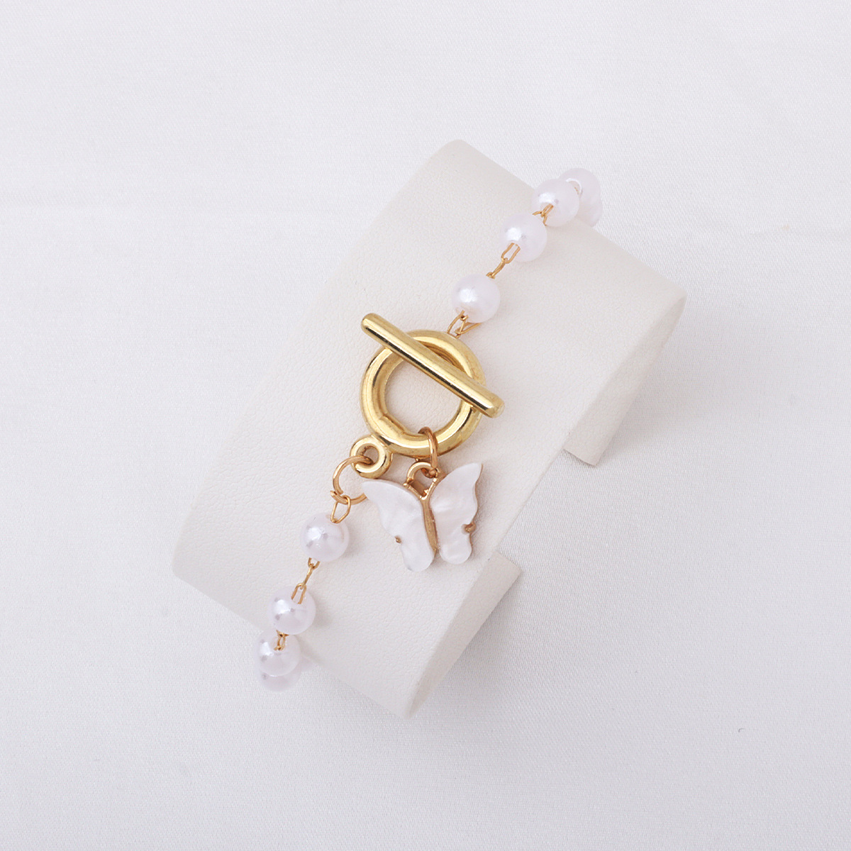 欧米の国境を越えた爆発的なアクセサリーファッションの贅沢感OTブレスレットは真珠の手作りチェーン蝶ペンダントブレスレットの女性に似せている