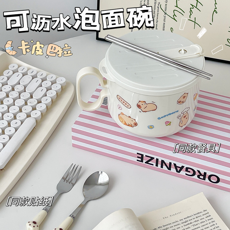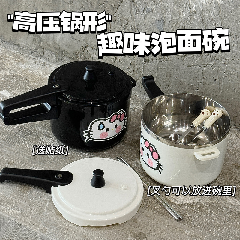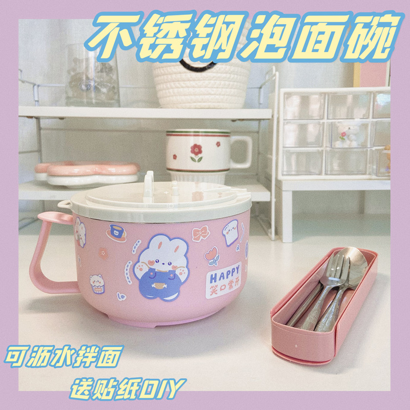 高顔値ins風304ステンレス製カップラーメン製高圧鍋型蓋付き学生寮かわいい大容量茶碗
