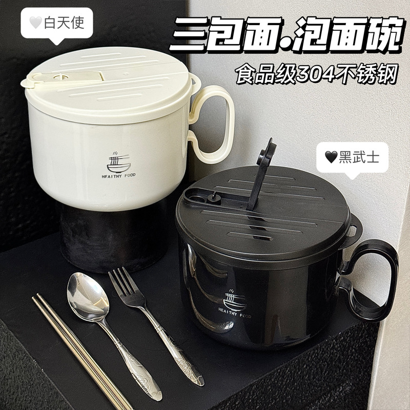 304ステンレス製カップラーメン碗蓋付きins日系大容量水切りインスタントラーメン碗寮学生弁当箱