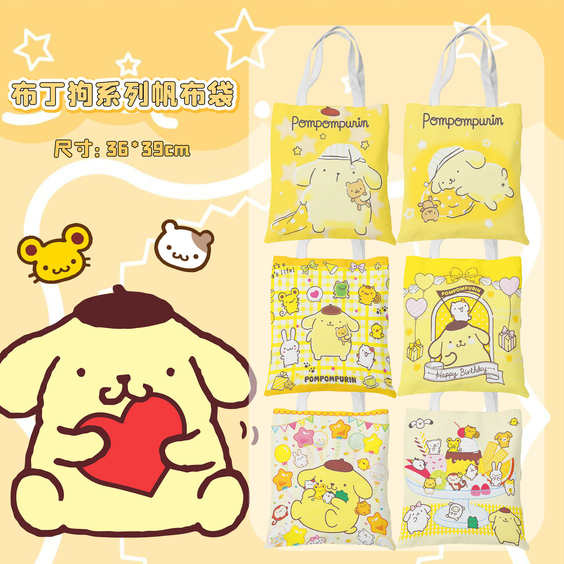 サンリオの布の犬の周辺のキャンバスバッグのキャンバスバッグは印刷できます。