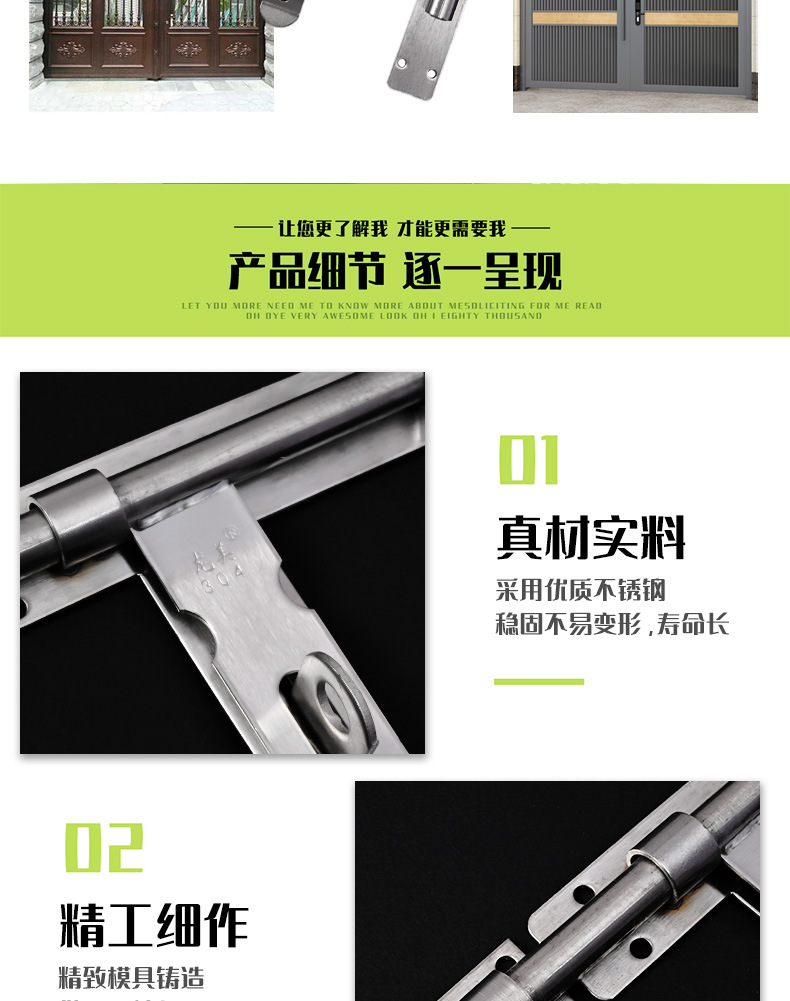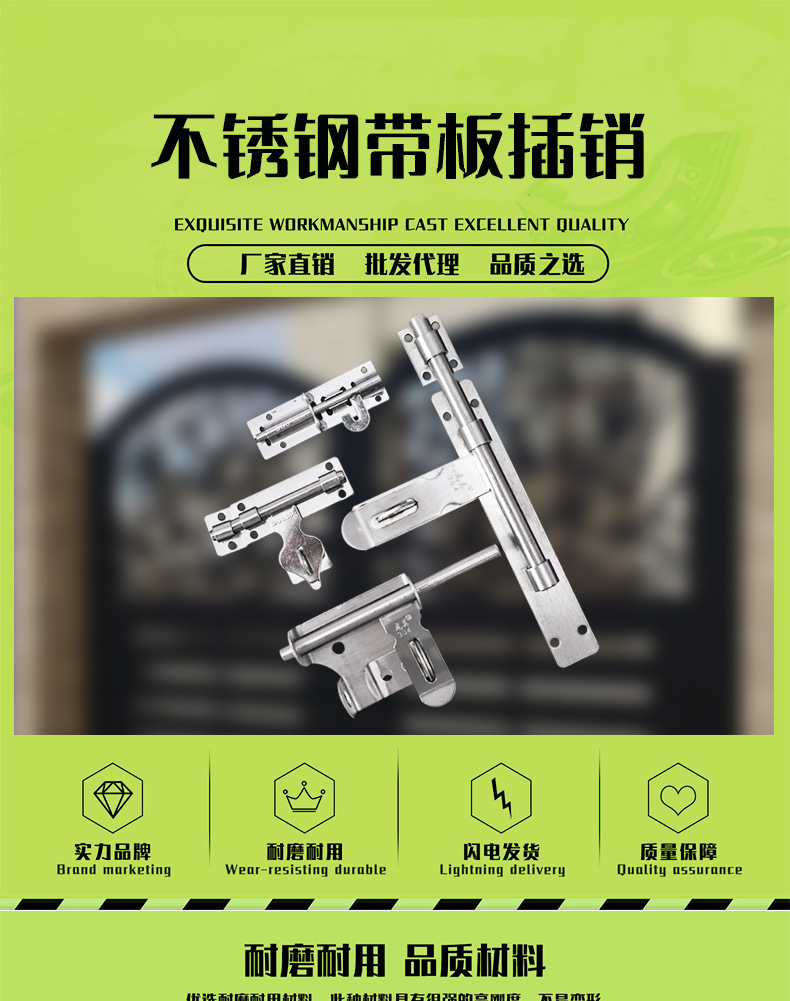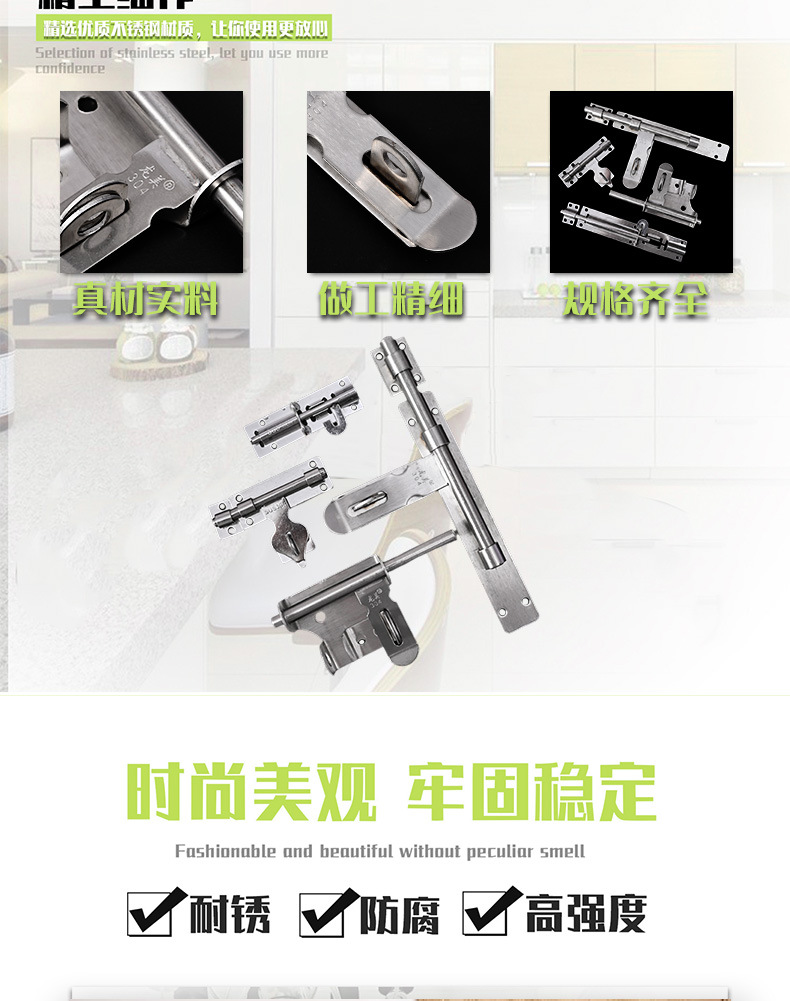 304ステンレス帯板ラッチ付きドアラッチ付きドア栓明装盗難防止安全バックルロック付きヒンジ卸売り